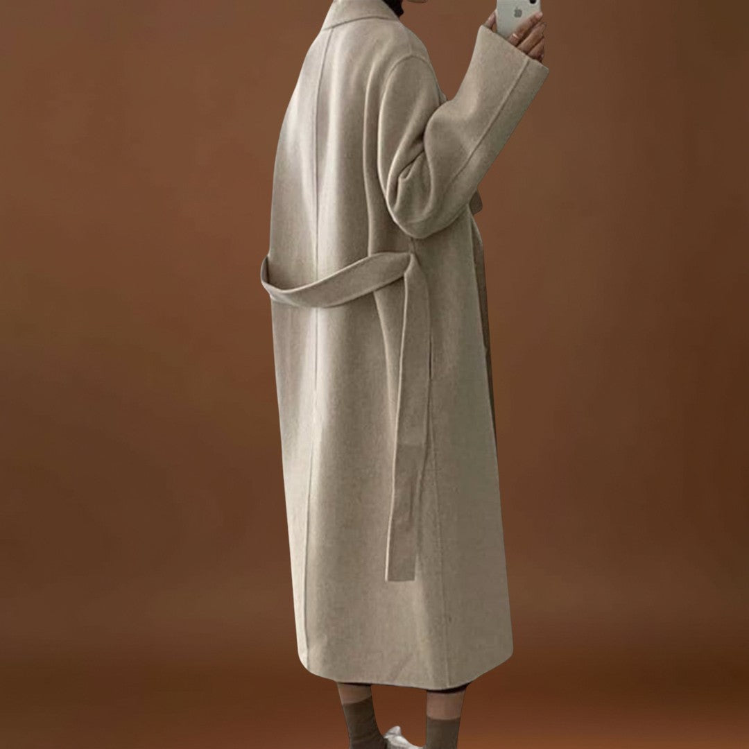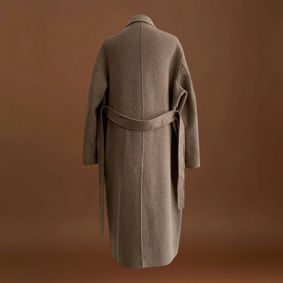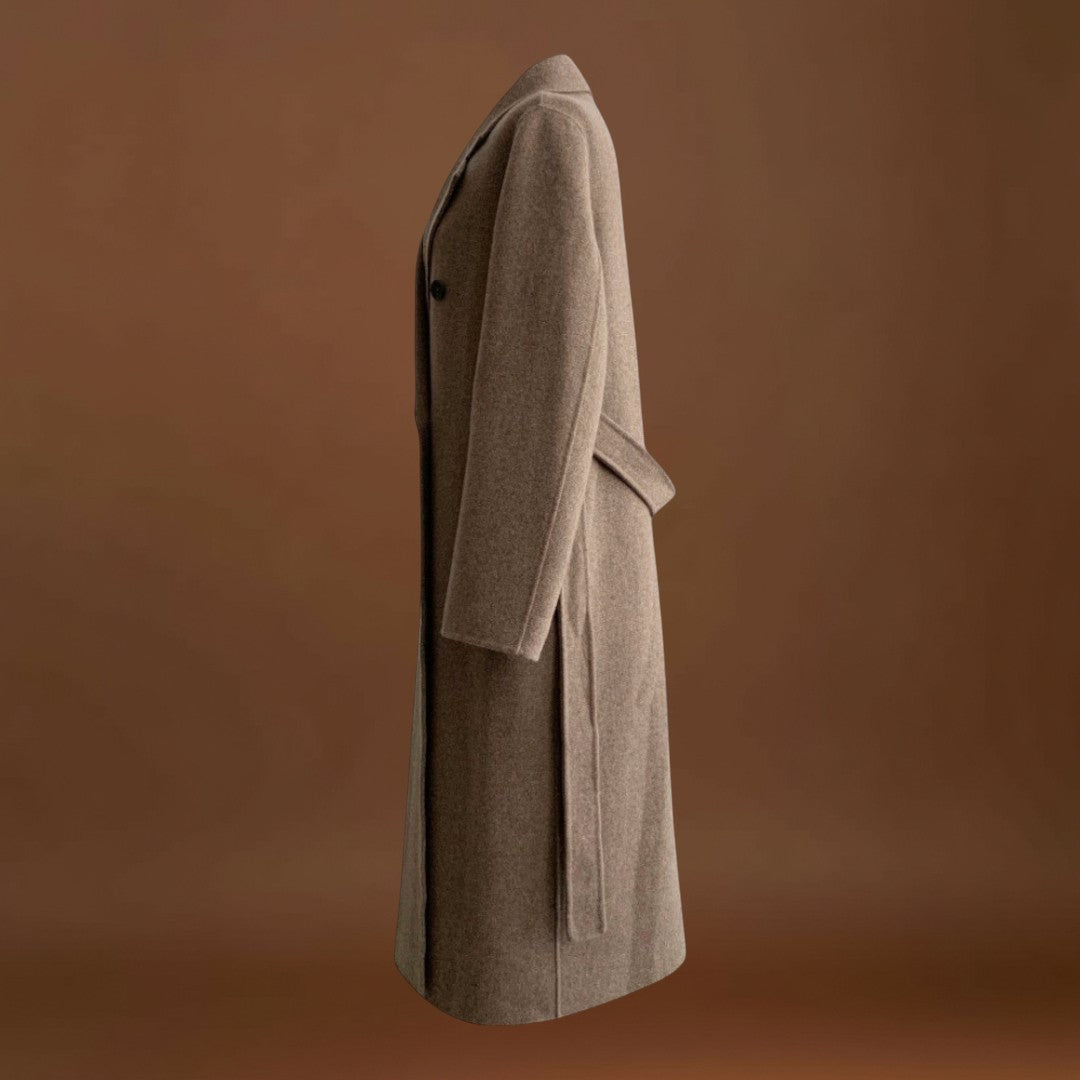 Ez a hosszú kabát tökéletesen ötvözi a klasszikus stílust egy ellenállhatatlan kényelemmel. Egy sophisztikált gallérral, elegáns gombokkal és praktikus övvel rendelkezik, amely kifinomult sziluettet kínál, miközben megőrzi a kényelmet a hideg napokon. Ideális mindennapi viseletre és különleges alkalmakra, ez a kabát a funkcionalitást és az időtlen eleganciát ötvözi.