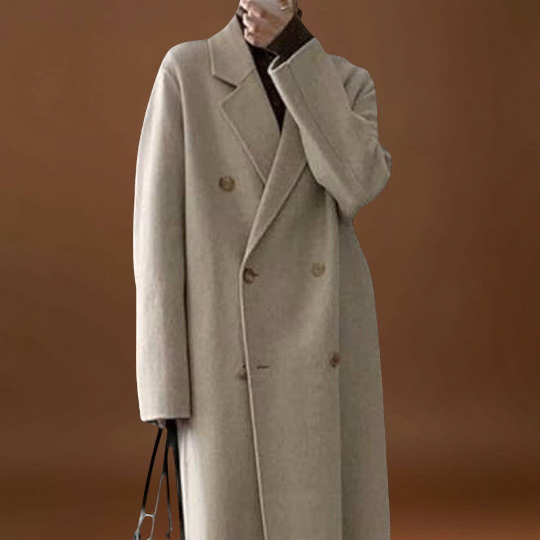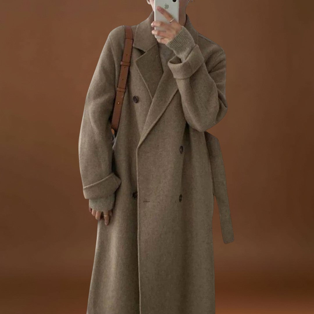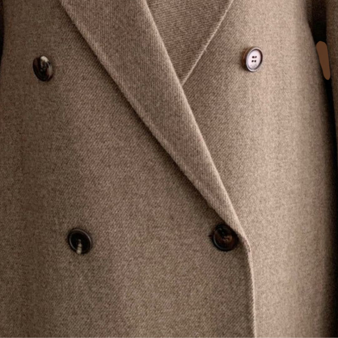 Ez a hosszú kabát tökéletesen ötvözi a klasszikus stílust egy ellenállhatatlan kényelemmel. Egy sophisztikált gallérral, elegáns gombokkal és praktikus övvel rendelkezik, amely kifinomult sziluettet kínál, miközben megőrzi a kényelmet a hideg napokon. Ideális mindennapi viseletre és különleges alkalmakra, ez a kabát a funkcionalitást és az időtlen eleganciát ötvözi.