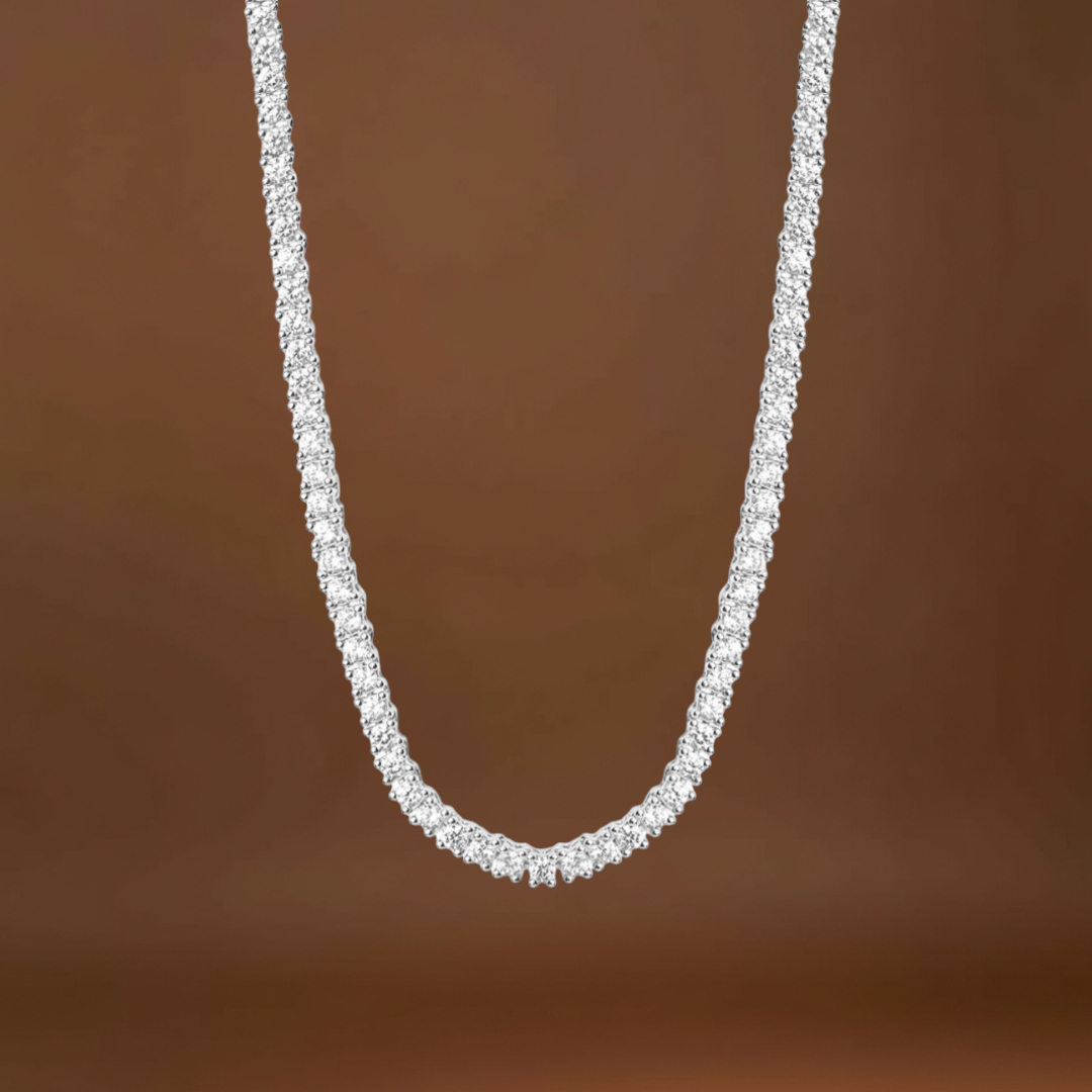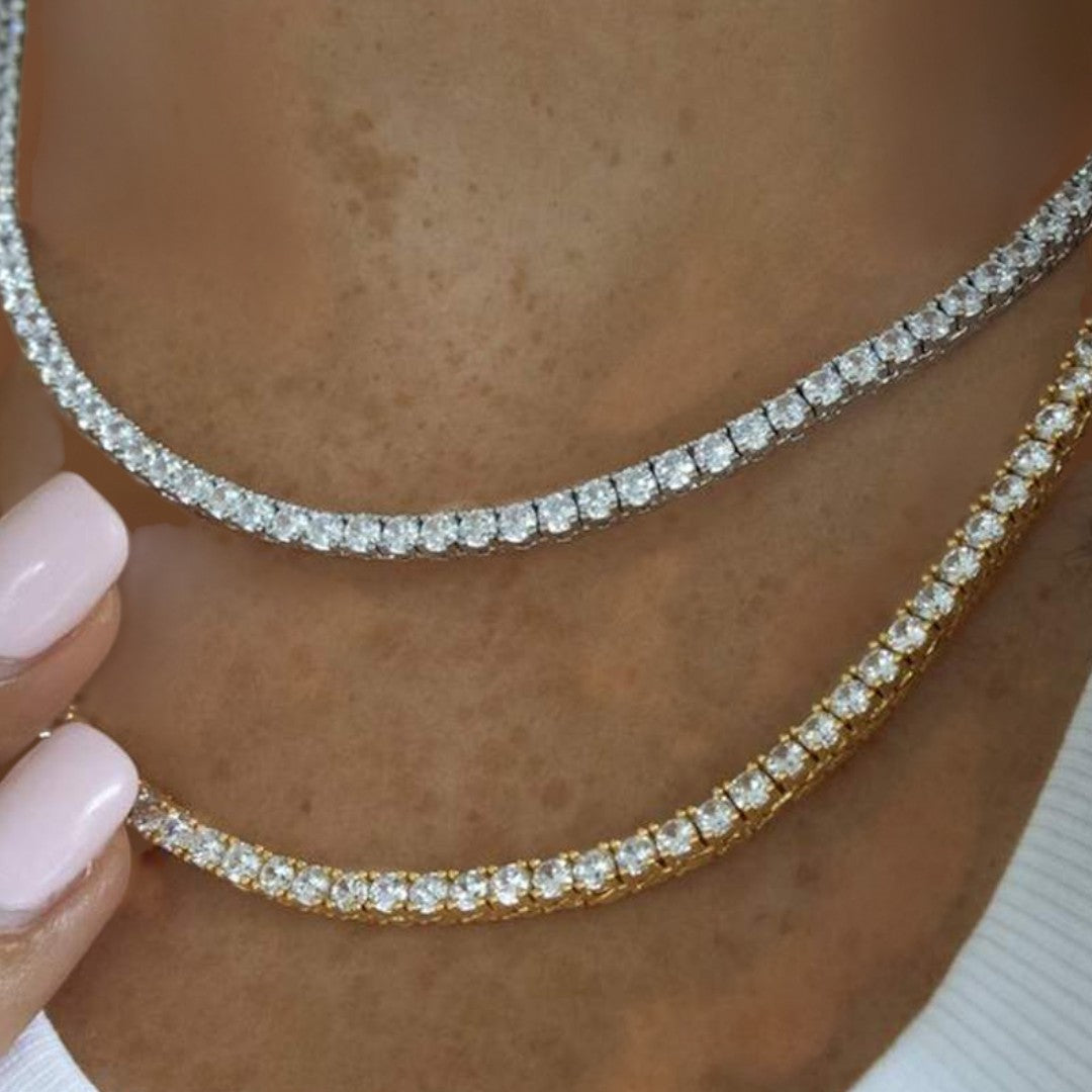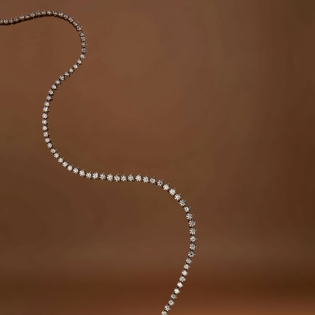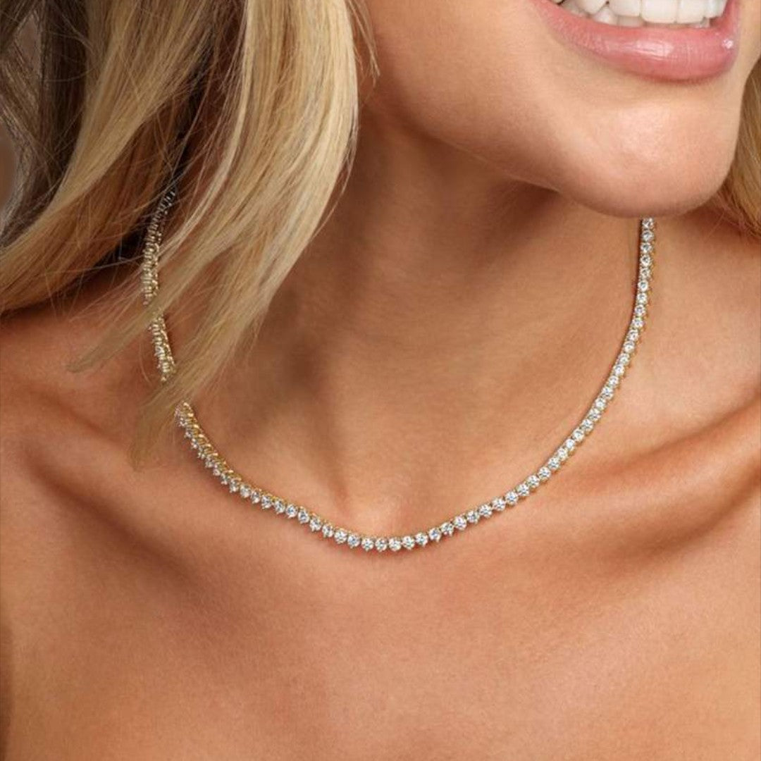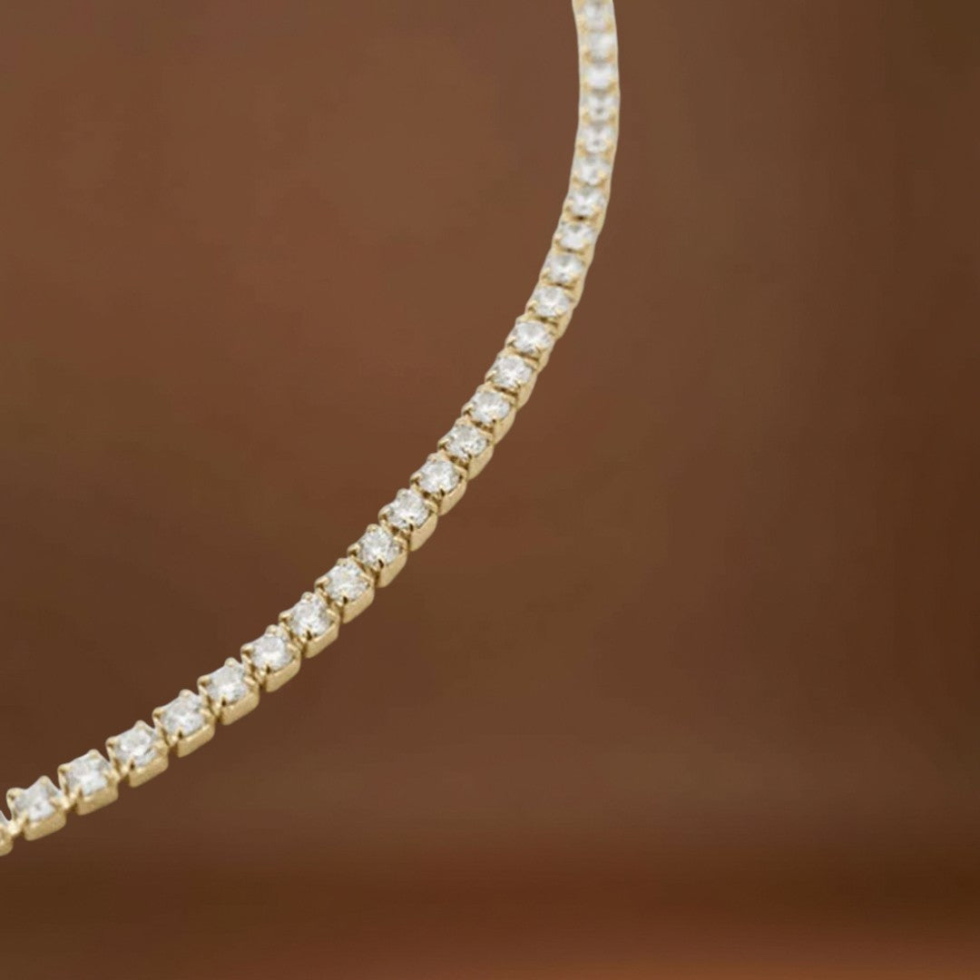 Adj egy csipetnyi luxust a Riviéra Nyaklánccal, 14 karátos arany bevonattal. Ez a kifinomult darab egy folyamatos vonalat mutat be csillogó kövekből, lenyűgöző és elegáns hatást keltve. Tökéletes bármilyen alkalomra, klasszikus és fényűző érintést adva, hogy felemelje a stílusodat.