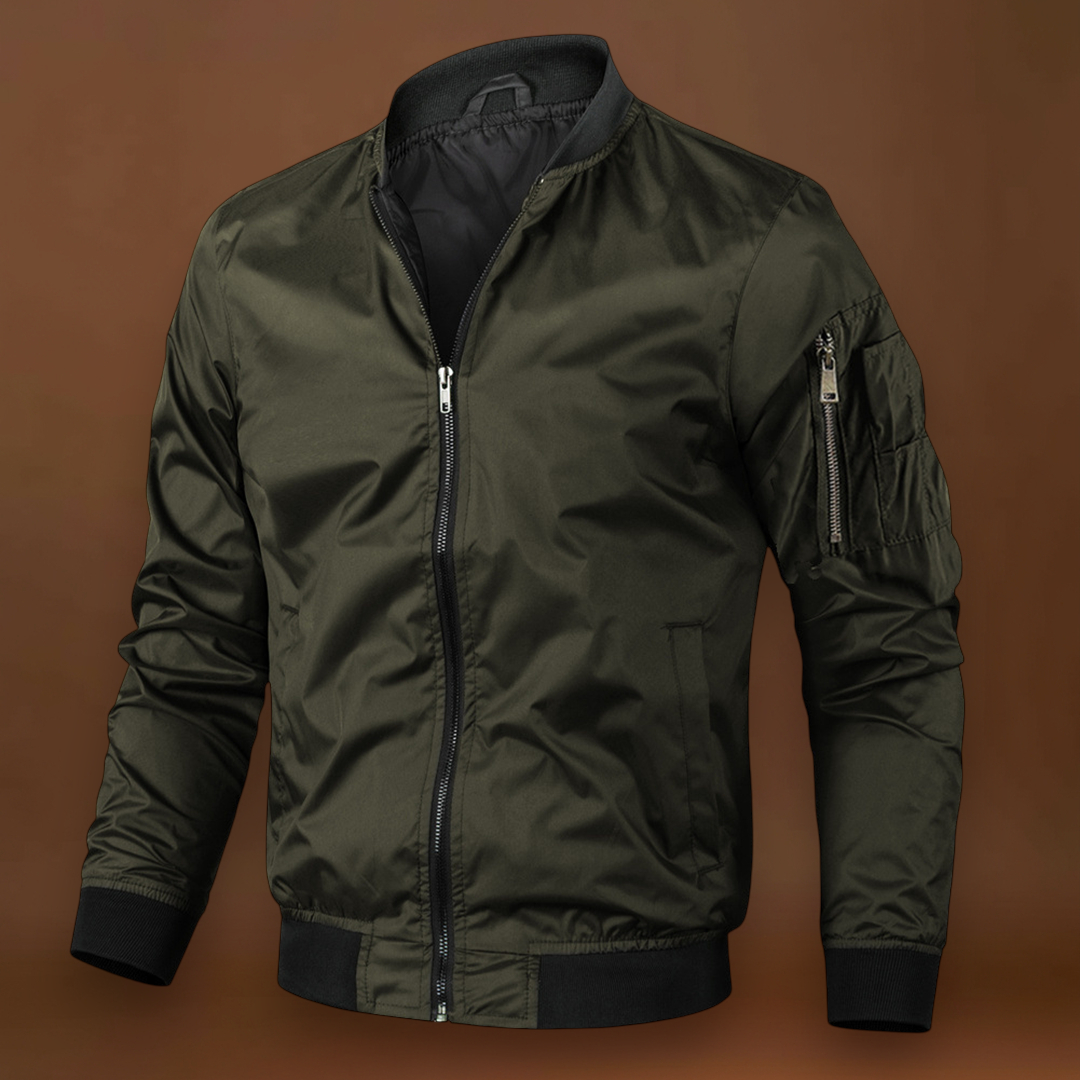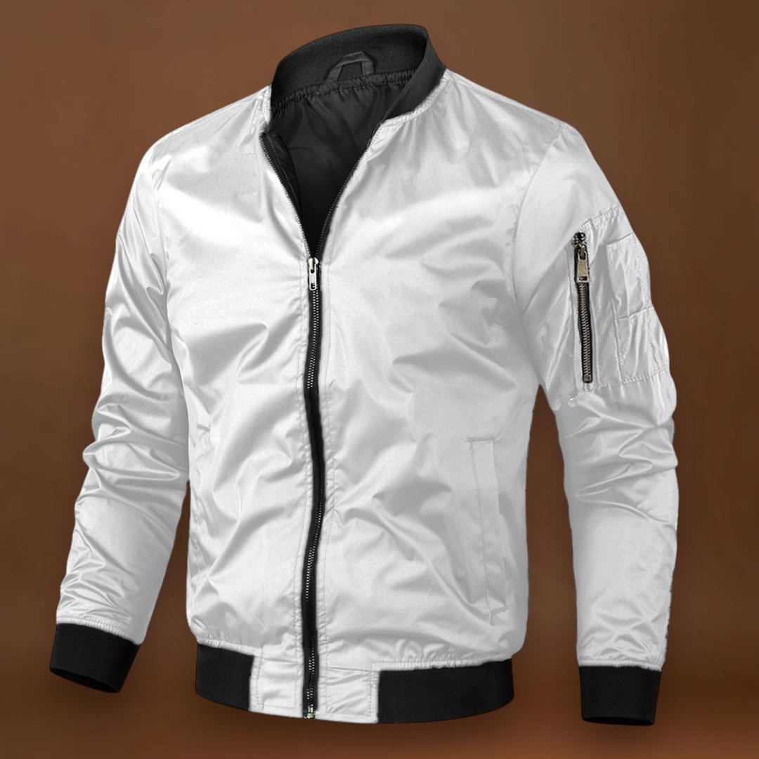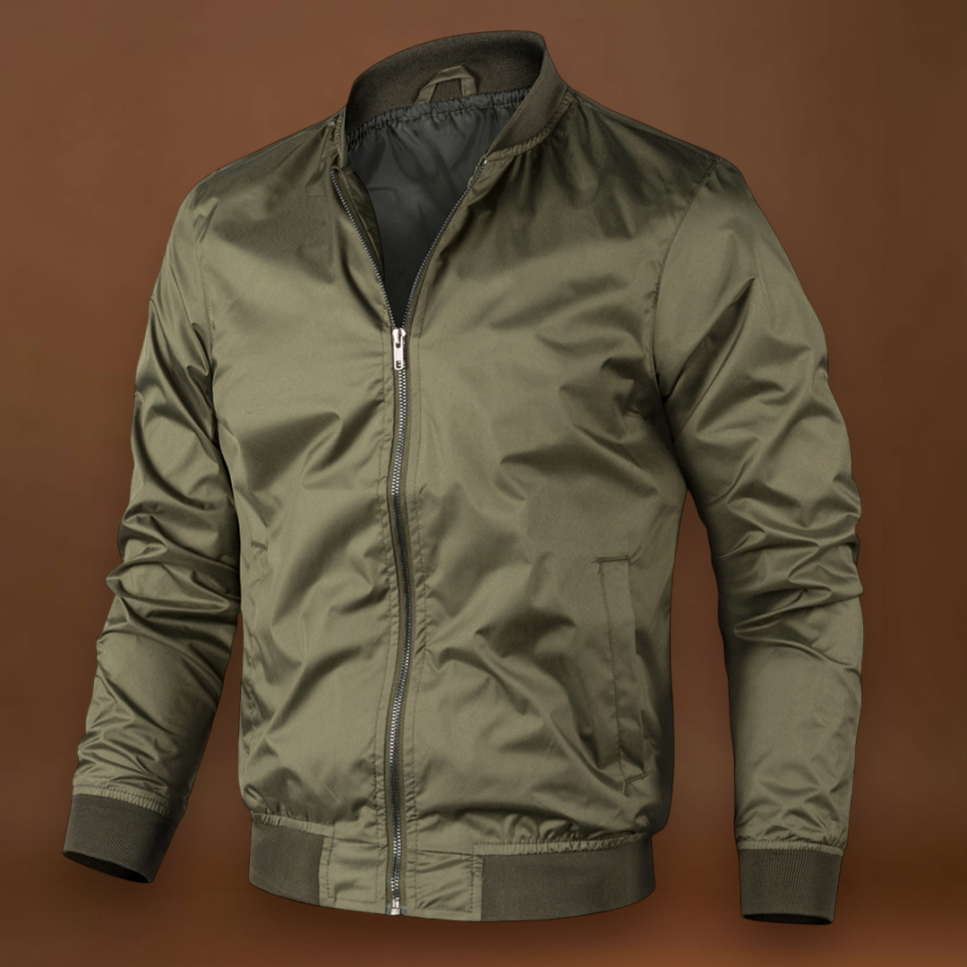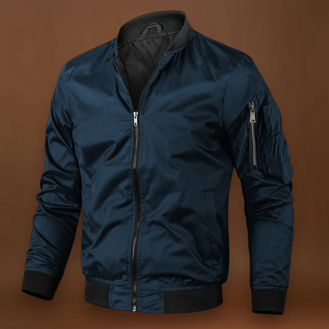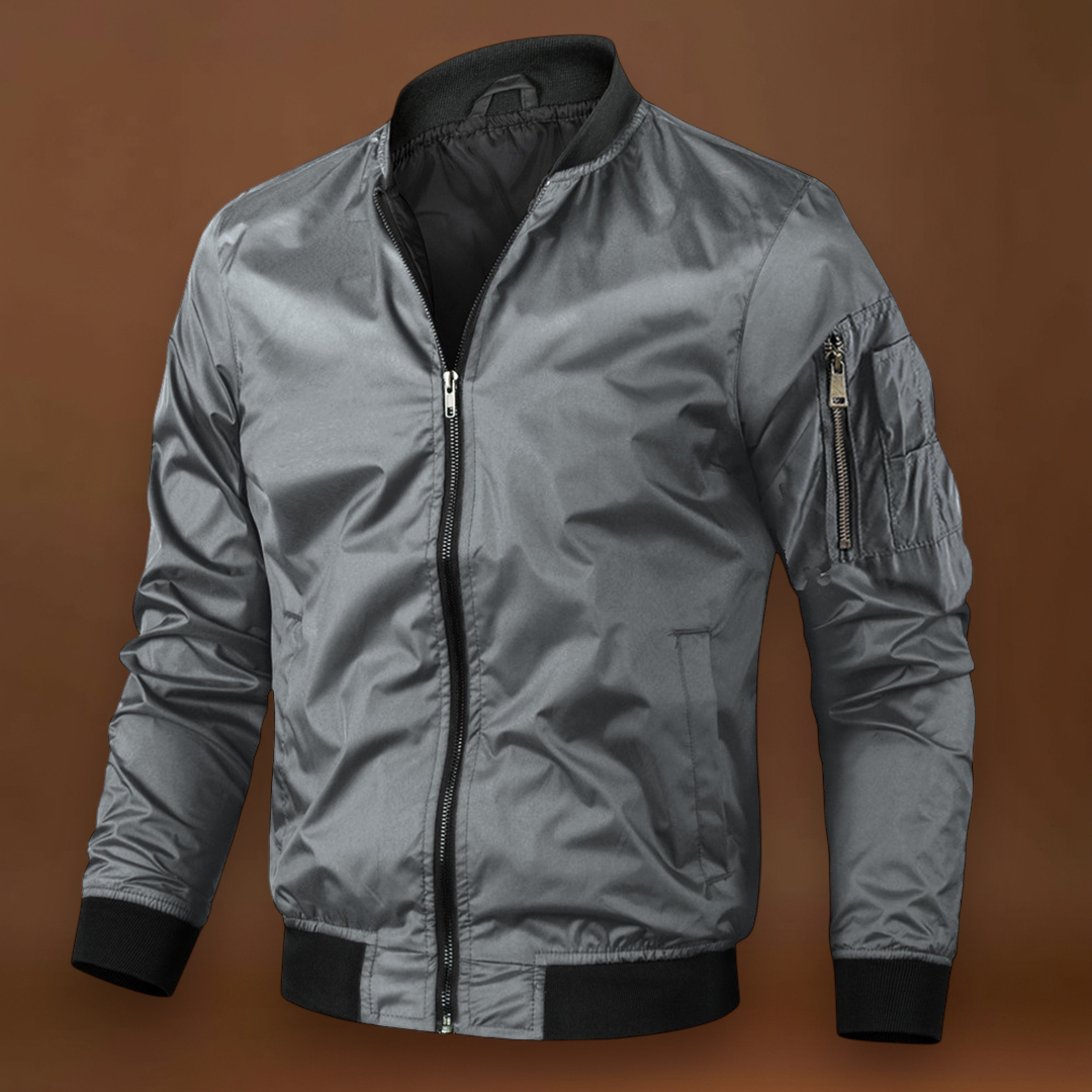 Ez a bomber dzseki egy praktikus külső réteg, amely enyhe meleget és szélállóságot biztosít. A dizájn tartalmaz egy biztonságos elülső zárást és zsebeket, amelyek lehetővé teszik a kisebb tárgyak szállítását. A dzseki anyagkeverékből készült, és puha belső bélése van, amely lehetővé teszi a könnyű mozgást más ruhák felett.
