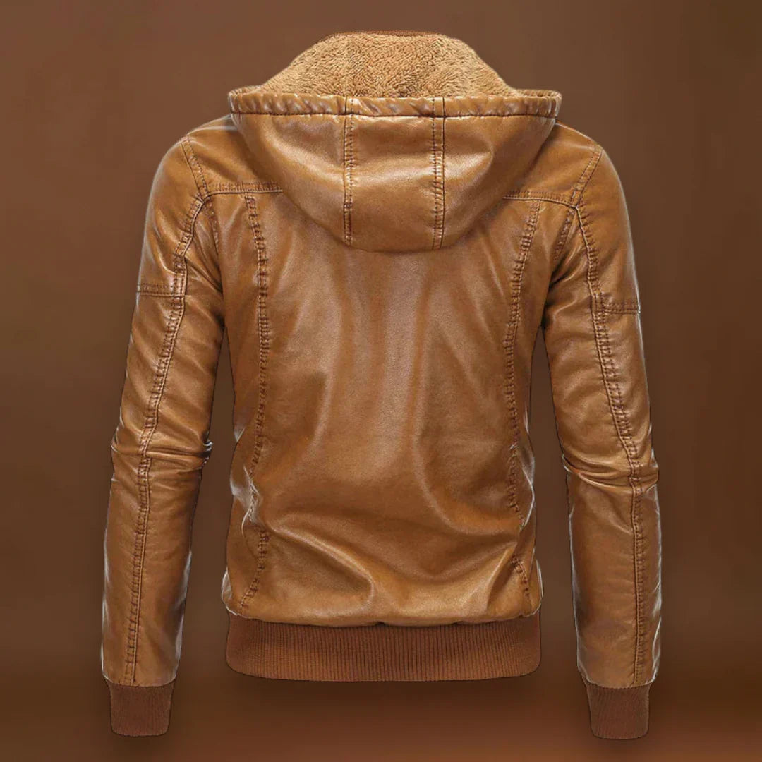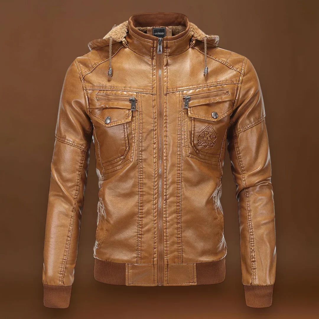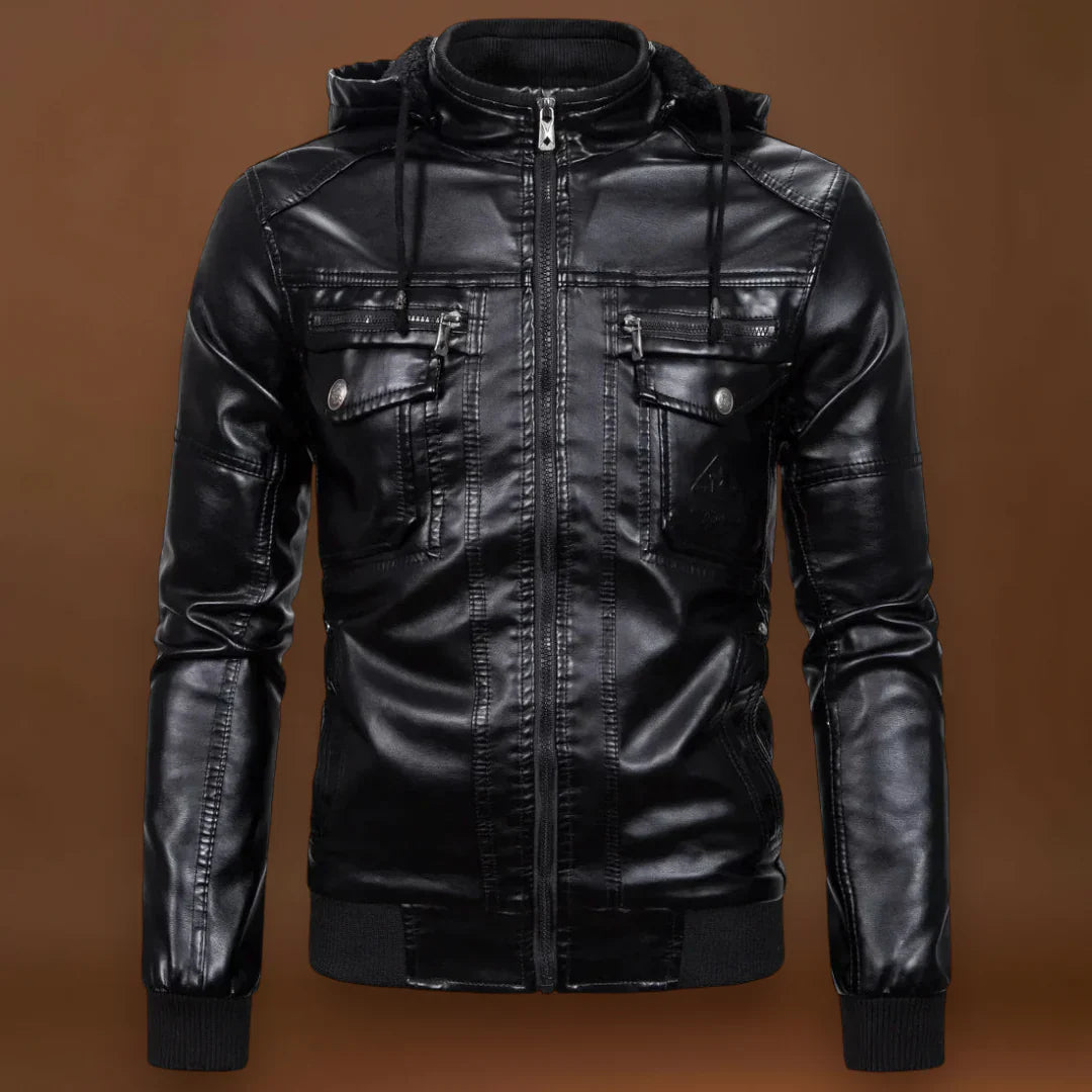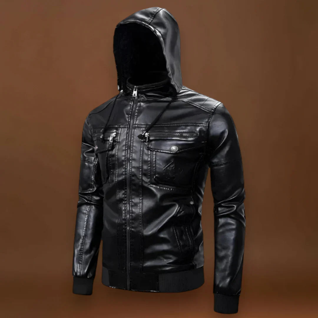 Jaxon™ – Bőrkabát kapucnival tökéletes olyan férfiak számára, akik modern megjelenést keresnek anélkül, hogy lemondanának a kényelemről. A bőr és az integrált kapucni kombinációjával ez a kabát ötvözi a klasszikus megjelenést a laza stílussal—ideális a mindennapokra, városi sétákra vagy éjszakai találkozókra.