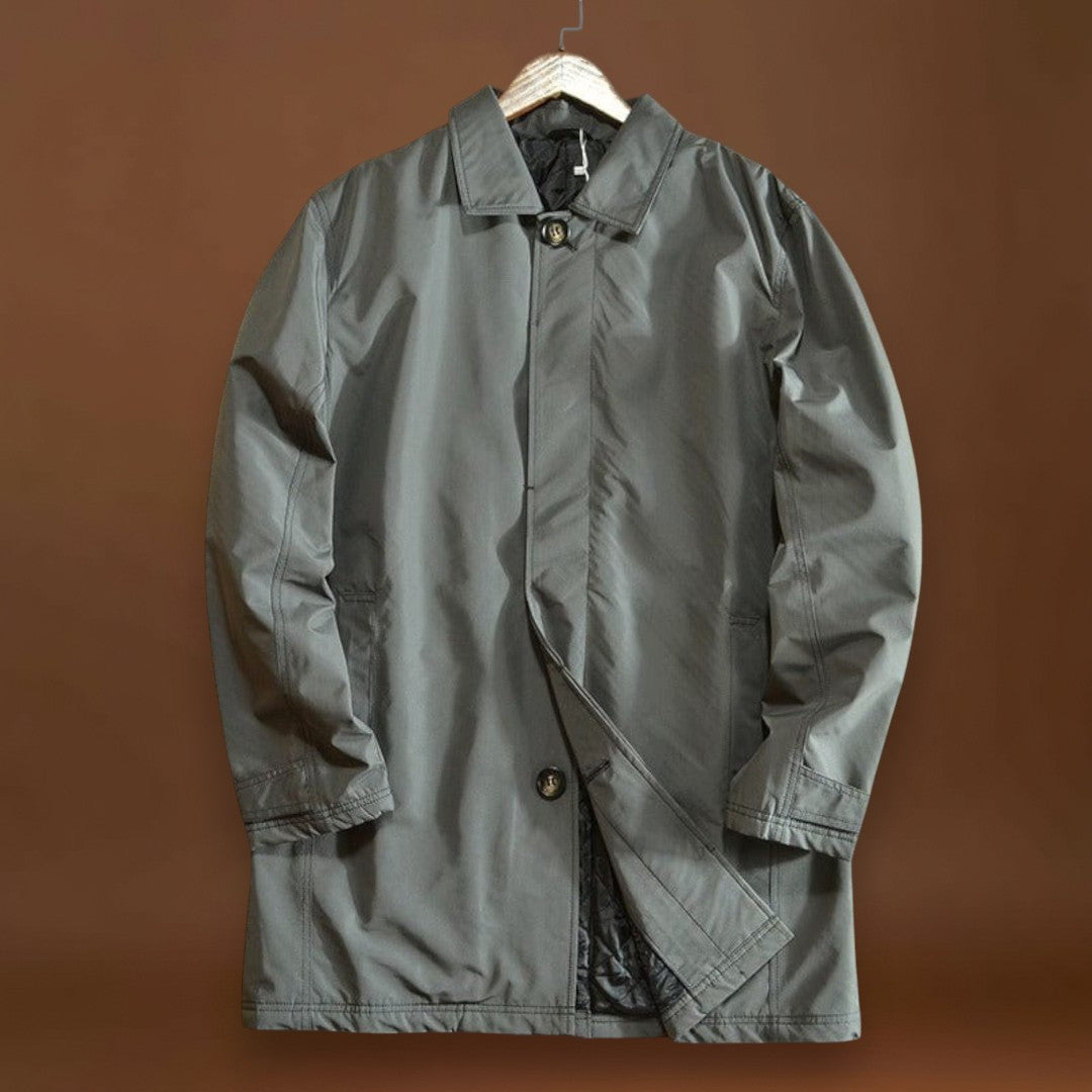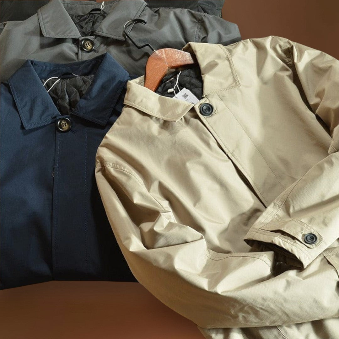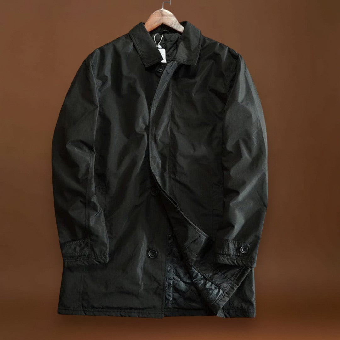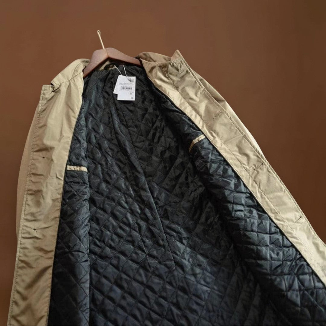Magas teljesítményű és sűrű szövetből készült, ez a kabát ötvözi az időjárás elleni védelmet és a mindennapi praktikusságot. A vízlepergető anyag vízálló anélkül, hogy merevvé válna, míg a steppelt hőszigetelés melegít anélkül, hogy súlyt adna hozzá. Tiszta vonalak, állítható mandzsetták és funkcionális zsebek teszik ezt a kabátot a mindennapi viseletre ideálissá.