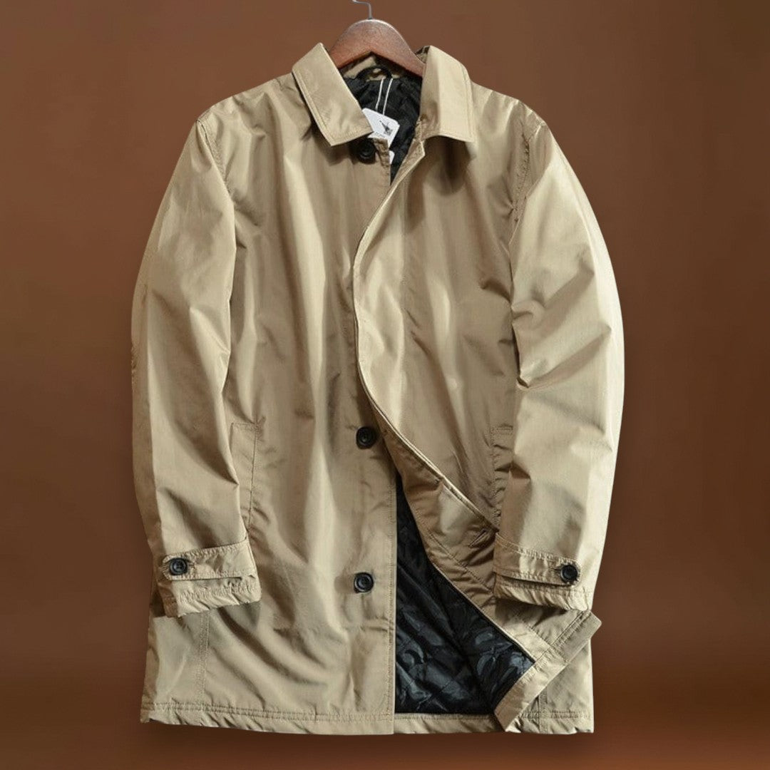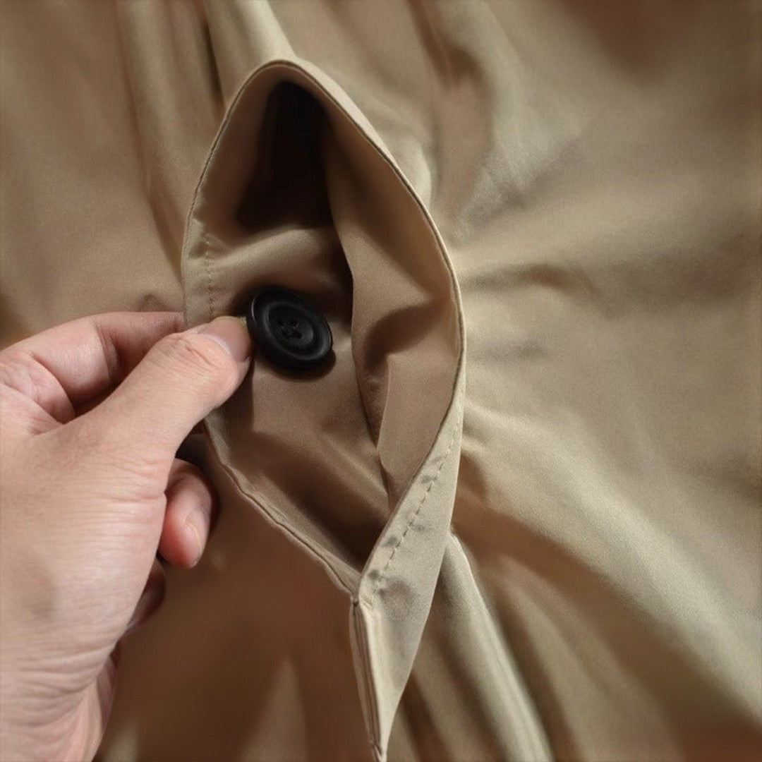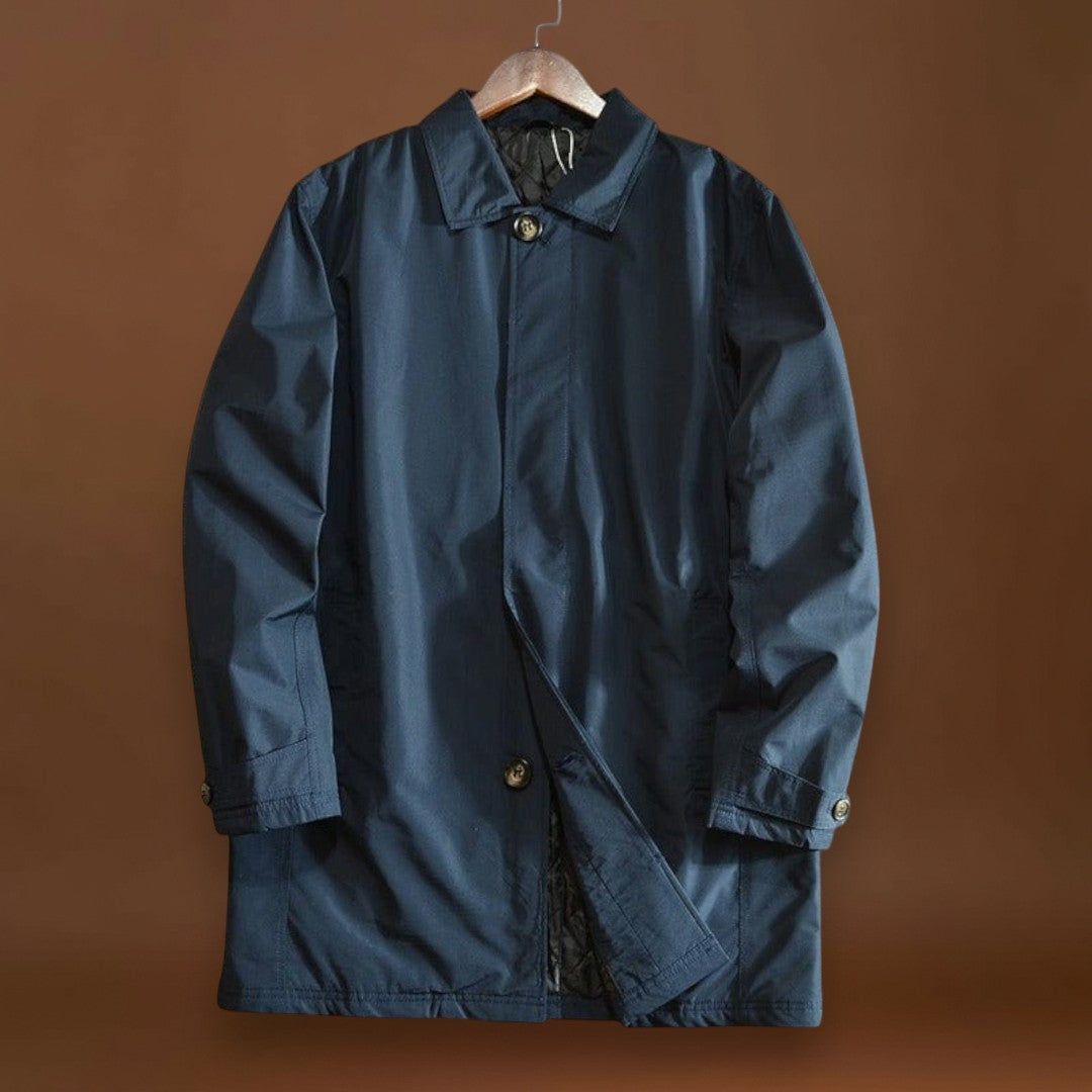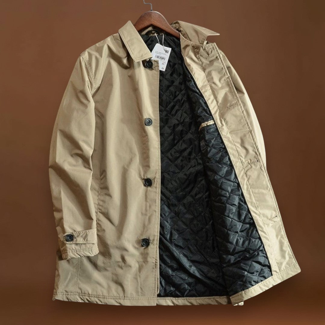 Magas teljesítményű és sűrű szövetből készült, ez a kabát ötvözi az időjárás elleni védelmet és a mindennapi praktikusságot. A vízlepergető anyag vízálló anélkül, hogy merevvé válna, míg a steppelt hőszigetelés melegít anélkül, hogy súlyt adna hozzá. Tiszta vonalak, állítható mandzsetták és funkcionális zsebek teszik ezt a kabátot a mindennapi viseletre ideálissá.