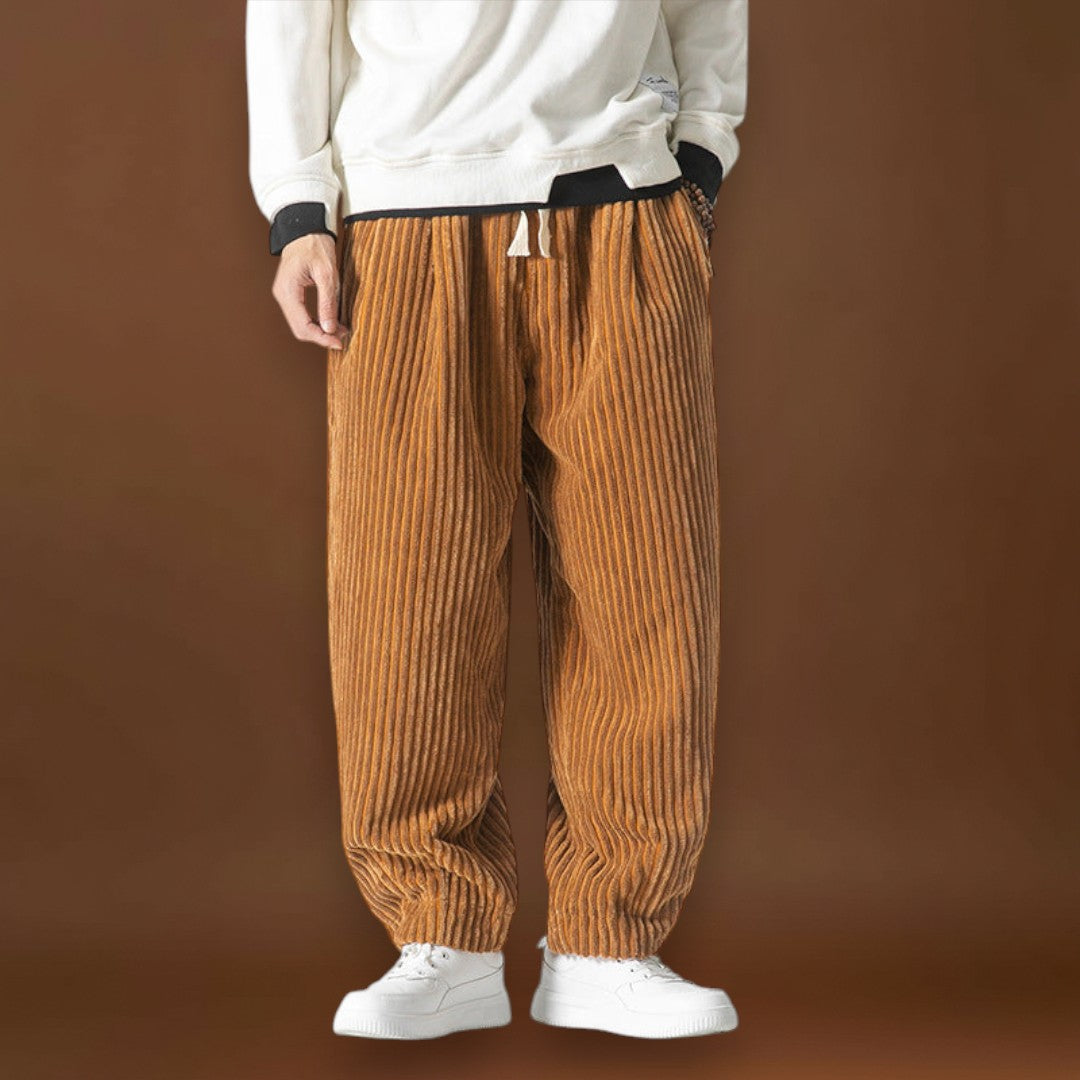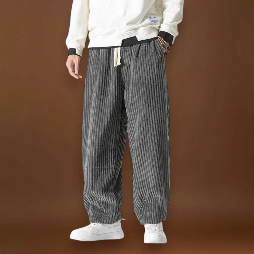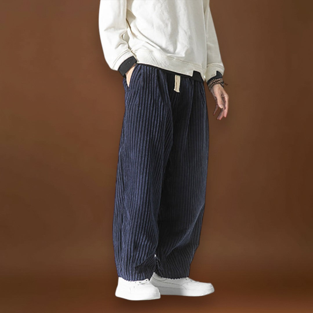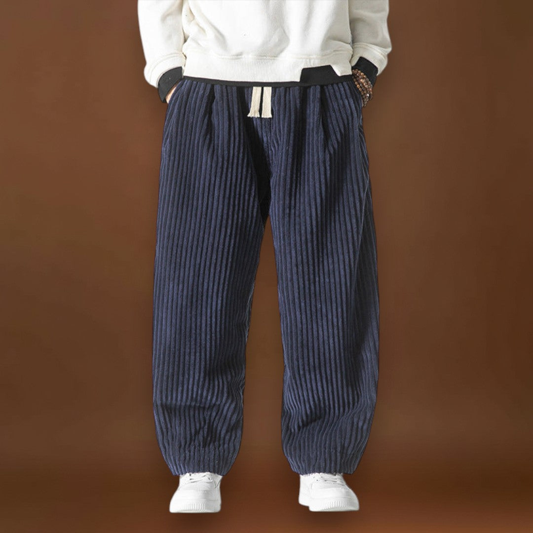 A kifinomult kényelem ötvöződik az időtlen stílussal - a Masaaki™ csíkos bársonynadrág!