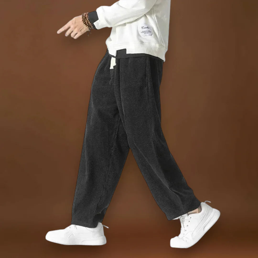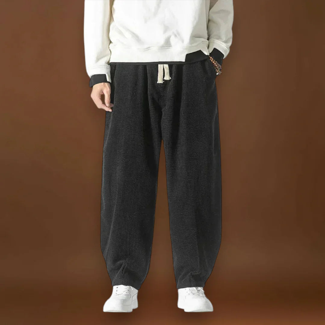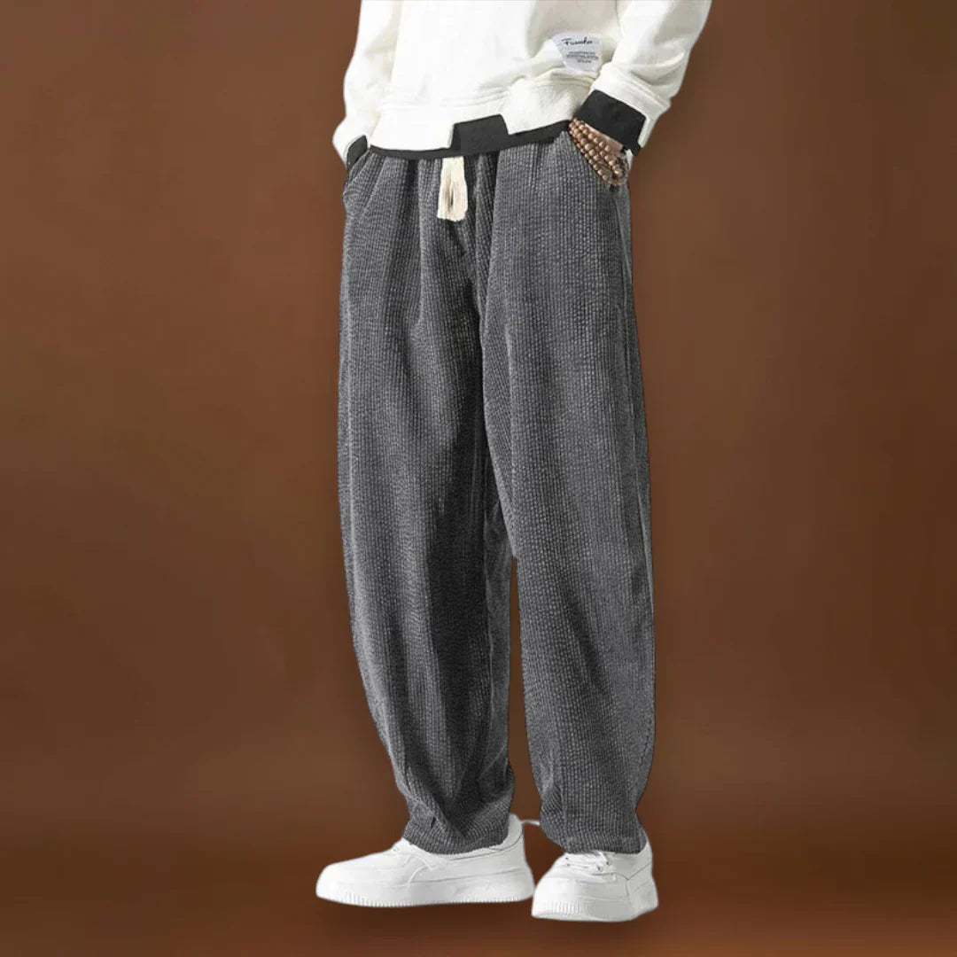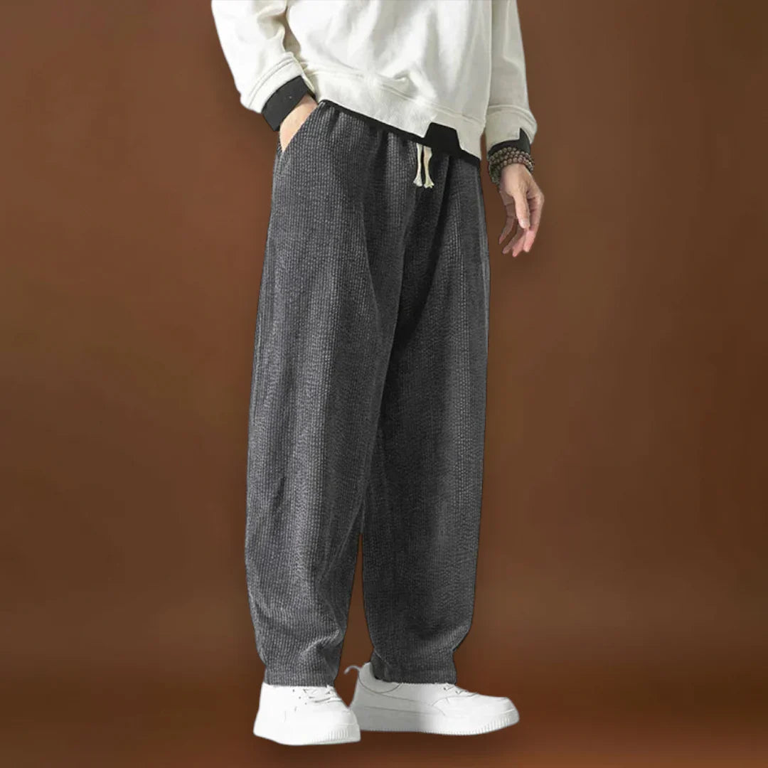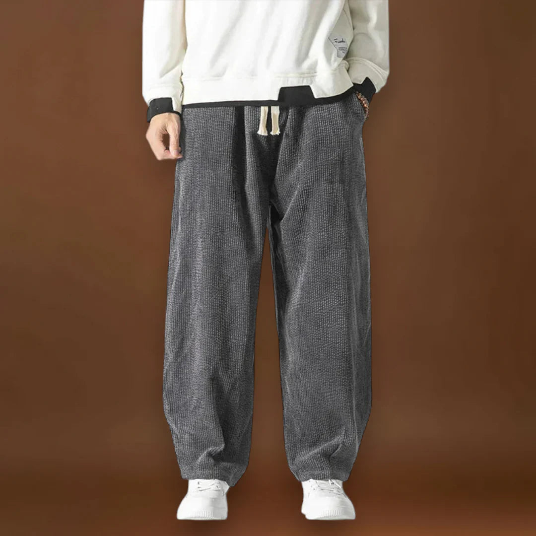 Henry | A Széles Velúr Kargyűrűs Nadrág egy puha velúr keverékből készült, amely texturált érzetet és sima esést biztosít. A dizájn széles szabást ötvöz egy modern sziluettel, lehetővé téve a természetes mozgást és a laza illeszkedést.