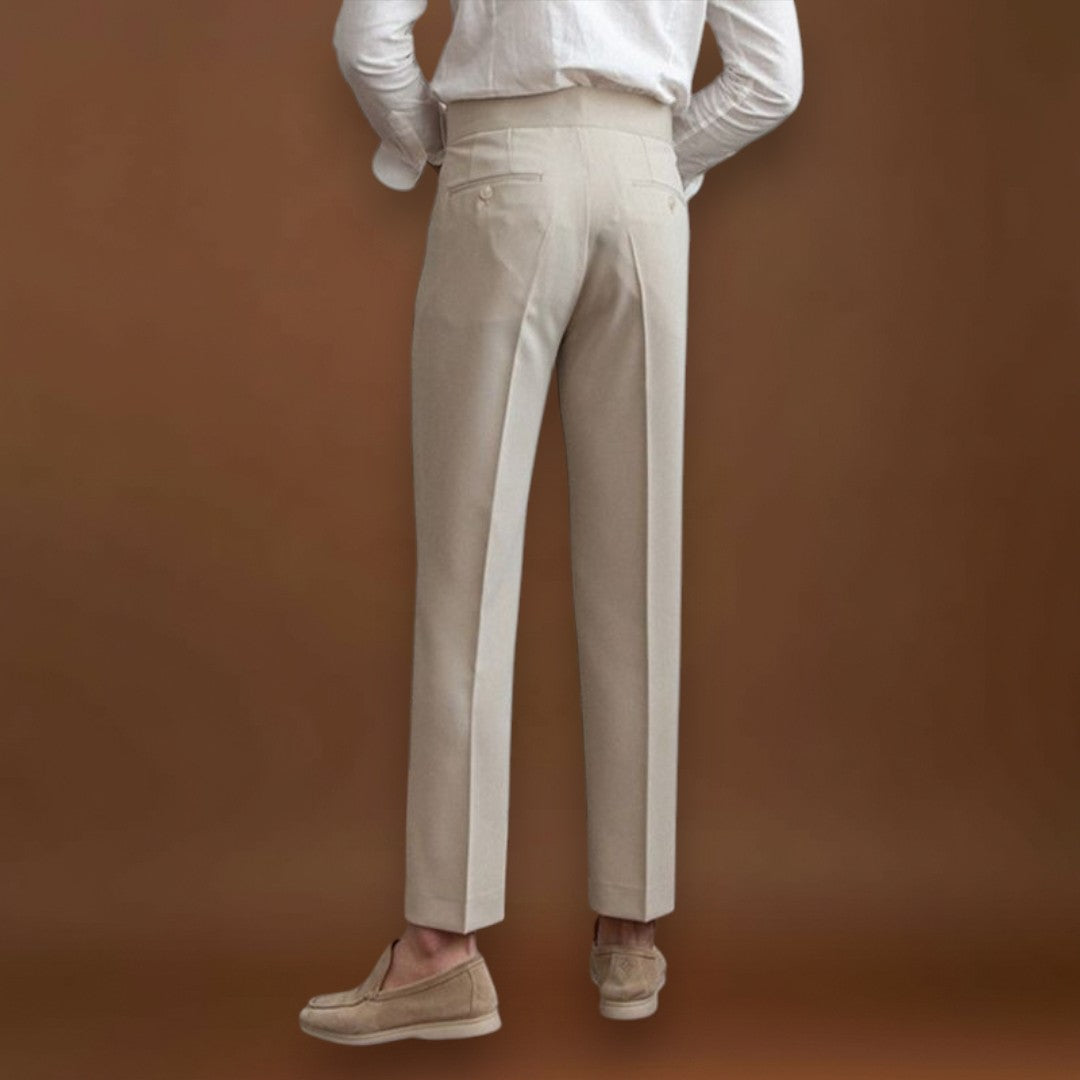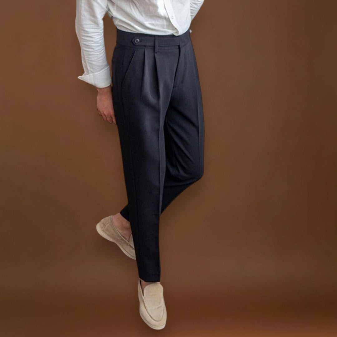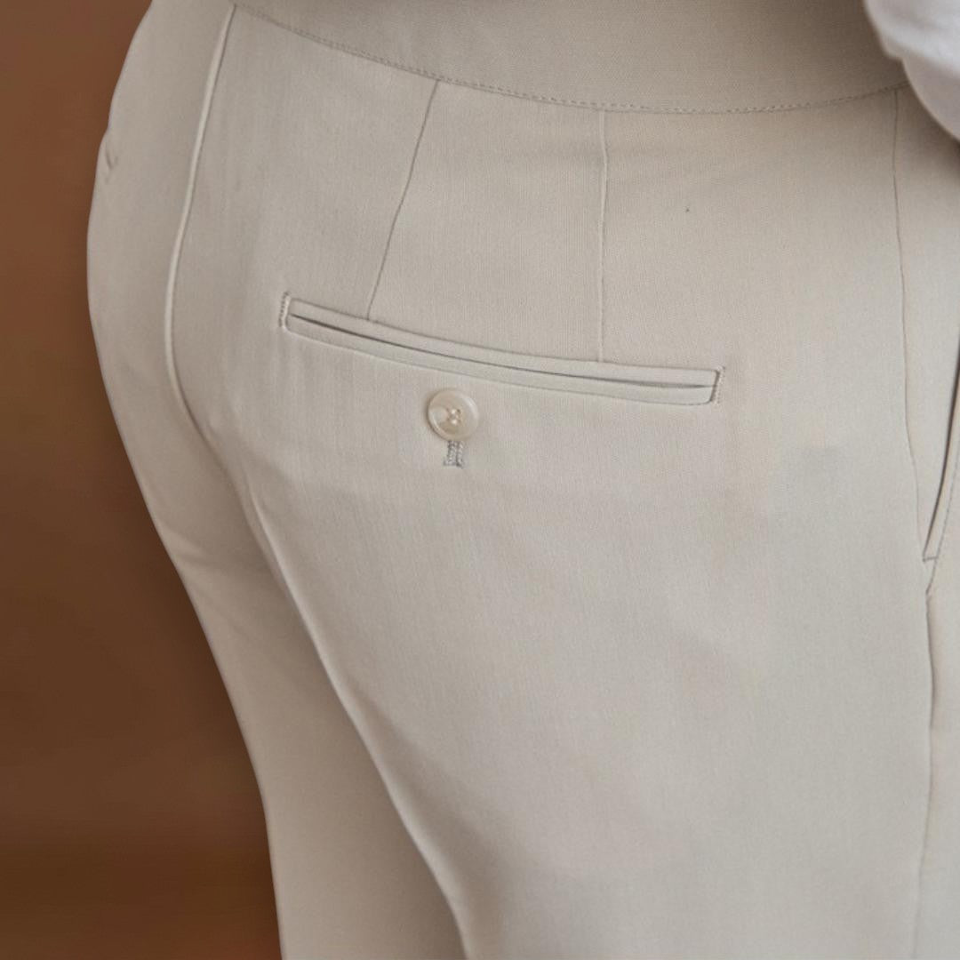 Ezek a testhezálló nadrágok klasszikus és streamlined szabással rendelkeznek, amely elegáns sziluettet teremt. A dizájn a megfelelő illeszkedésre és a letisztult vonalakra összpontosít, hogy kiegyensúlyozott megjelenést biztosítson. Az építési és részletekre való figyelem segít a nadrágoknak megőrizni formájukat a mindennapi mozgás során.