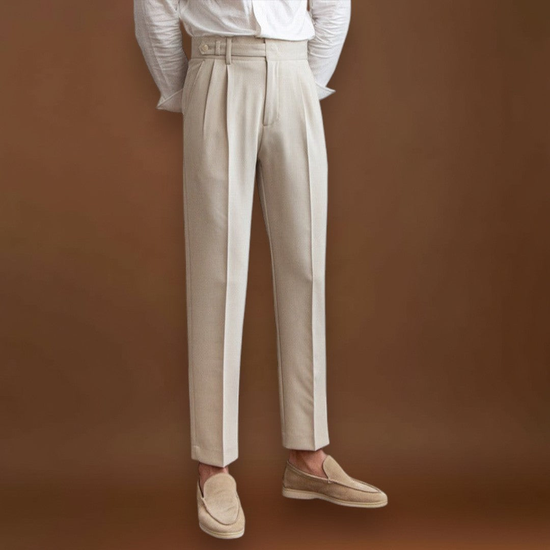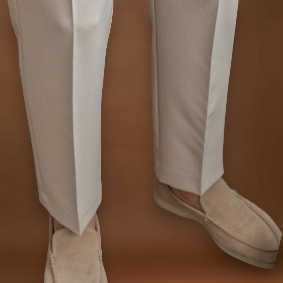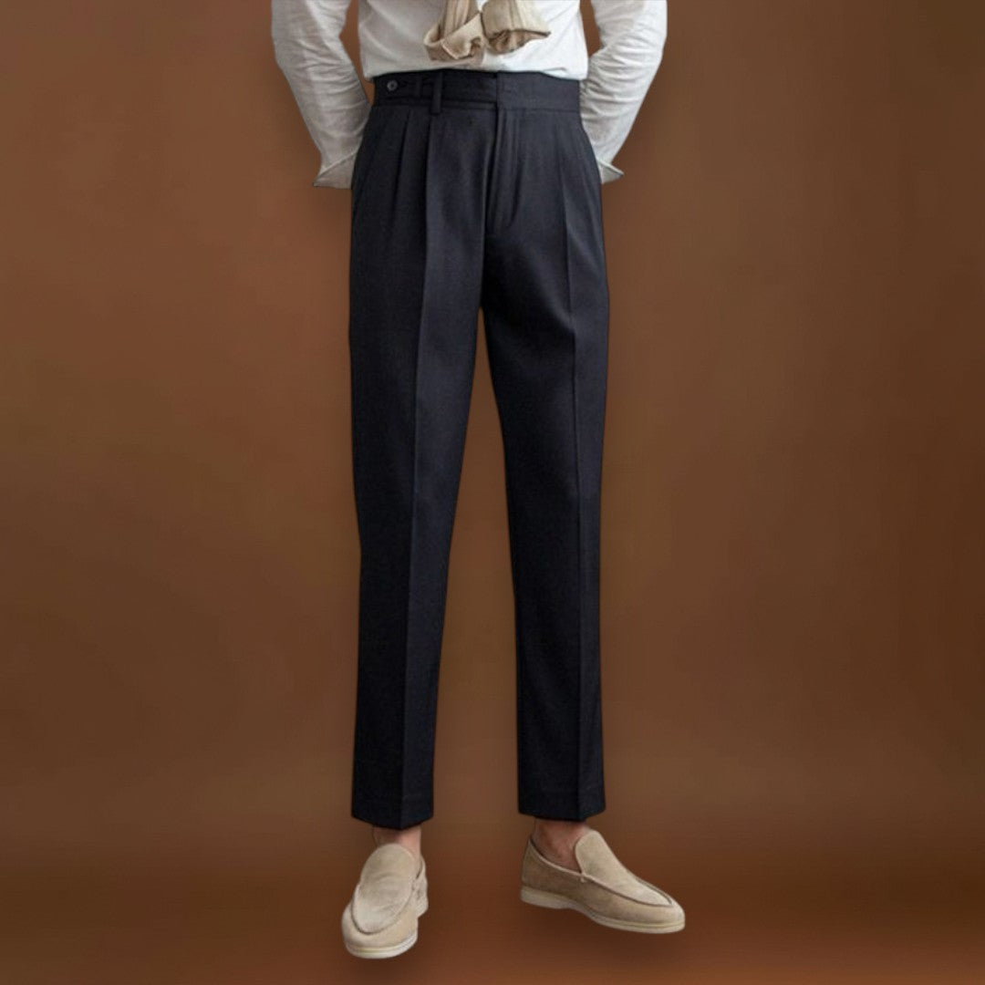 Ezek a testhezálló nadrágok klasszikus és streamlined szabással rendelkeznek, amely elegáns sziluettet teremt. A dizájn a megfelelő illeszkedésre és a letisztult vonalakra összpontosít, hogy kiegyensúlyozott megjelenést biztosítson. Az építési és részletekre való figyelem segít a nadrágoknak megőrizni formájukat a mindennapi mozgás során.