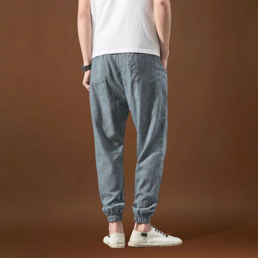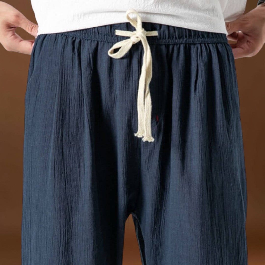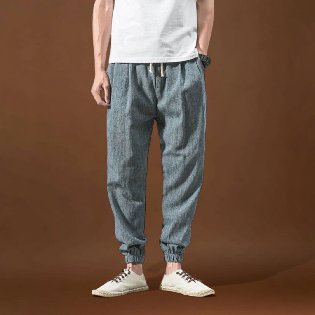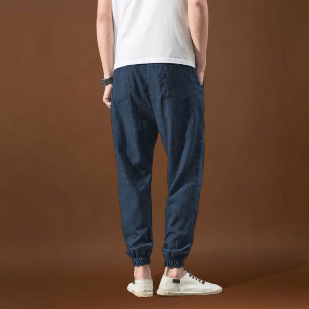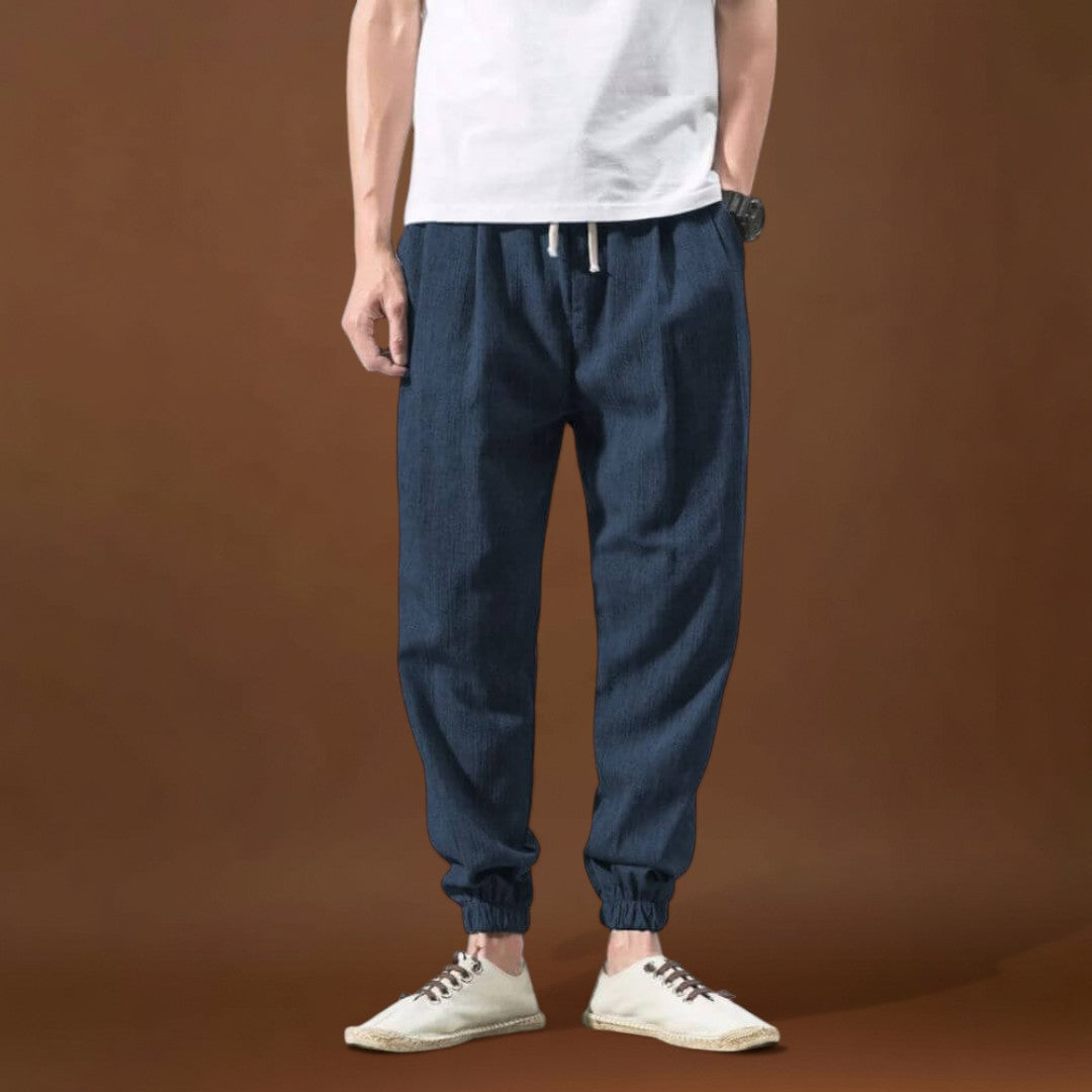 Fedezze fel a tökéletes kombinációt a lazaság és a kifinomultság között a Yoko nadrággal. Olyan férfiak számára készült, akik értékelik a kényelmet anélkül, hogy feláldoznák a stílust, ezek a nadrágok könnyedséget és légáteresztőséget kínálnak egy laza szabással, amely alkalmazkodik a mozgásához. Akár pihen, utazik, vagy egy laza napra készül, a Yoko nadrágok egész napos kényelmet biztosítanak egy kis eleganciával.
