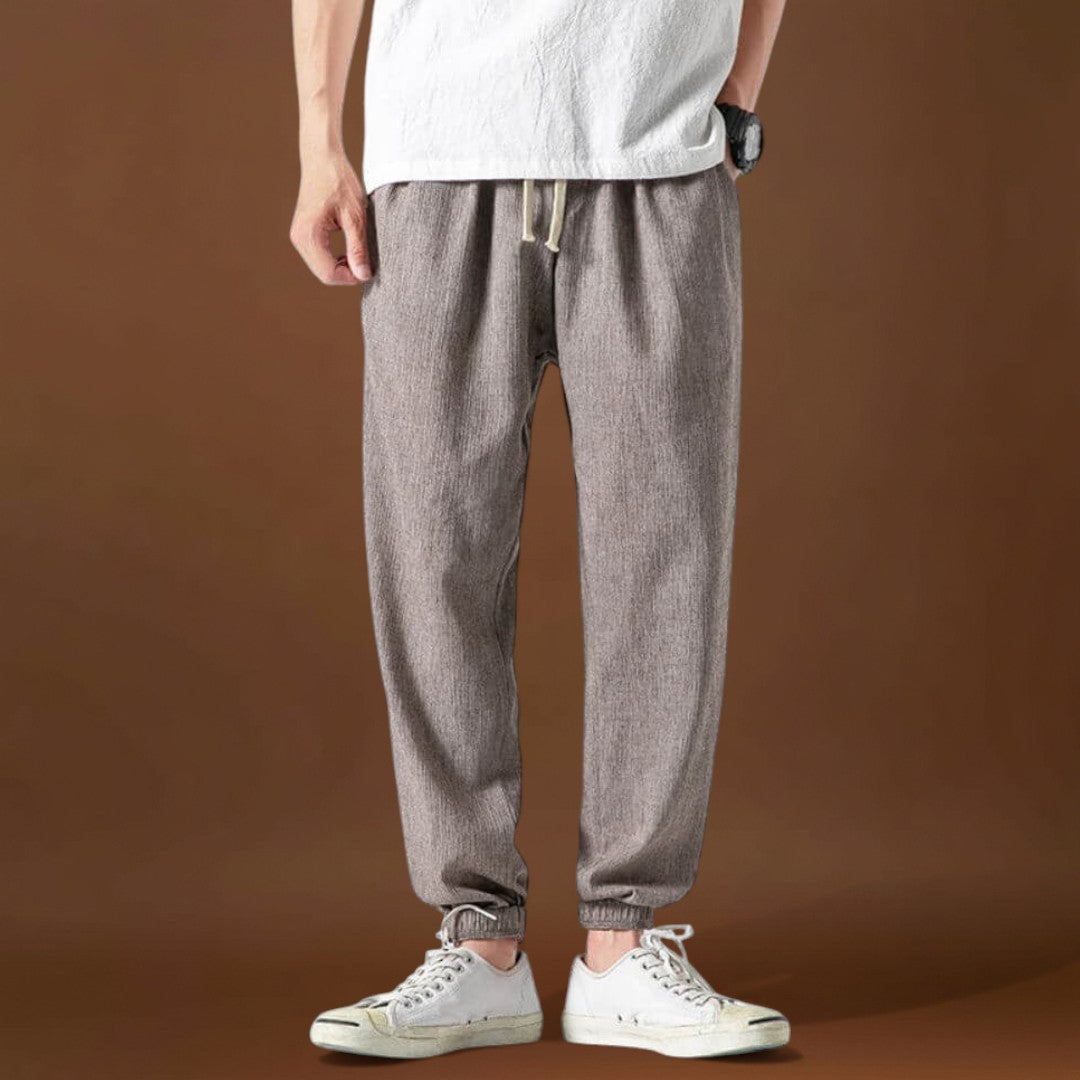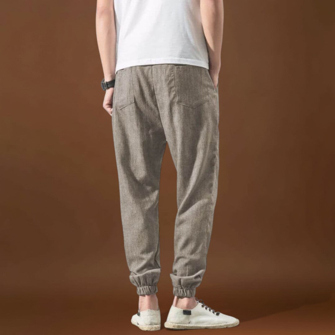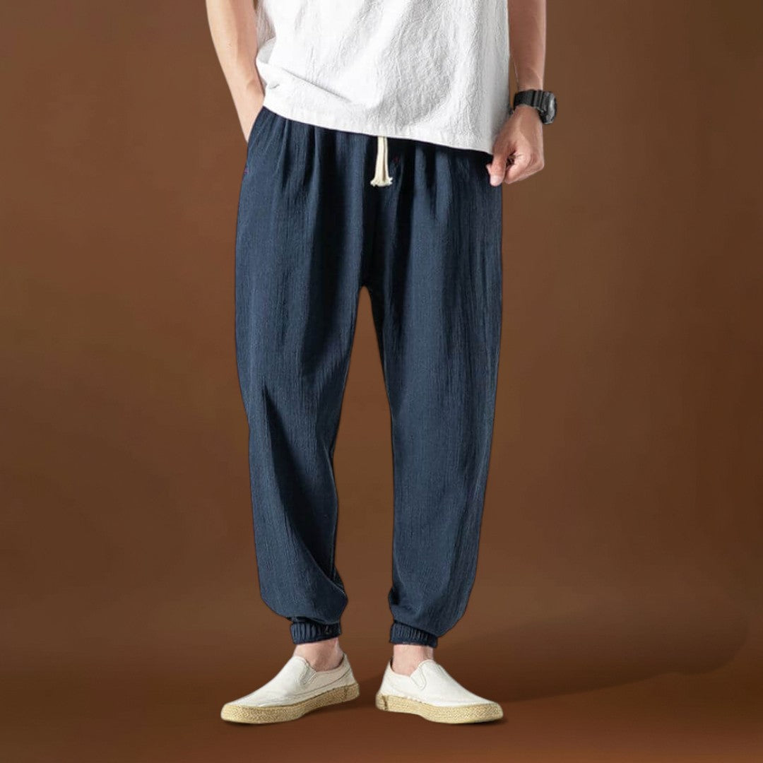 Fedezze fel a tökéletes kombinációt a lazaság és a kifinomultság között a Yoko nadrággal. Olyan férfiak számára készült, akik értékelik a kényelmet anélkül, hogy a stílust feláldoznák, ezek a nadrágok könnyedséget és légáteresztőséget kínálnak, laza szabásukkal pedig alkalmazkodnak a mozgásához. Akár pihen, utazik, vagy egy laza napra készül, a Yoko nadrágok egész napos kényelmet biztosítanak egy kis eleganciával.