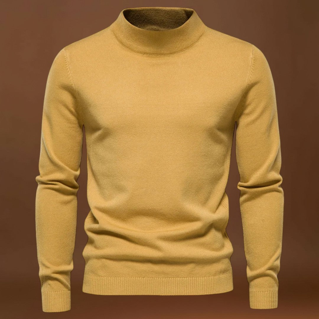 Ez a félmagas nyakú pulóver védelmet nyújt a nyaknak, miközben könnyű mozgást biztosít. A kevert fonal következetes meleget és puha érzetet biztosít anélkül, hogy megadná a szálakat. A nyakkivágás a nyak közepén helyezkedik el, ami enyhe szigetelést és rendezett sziluettet biztosít.