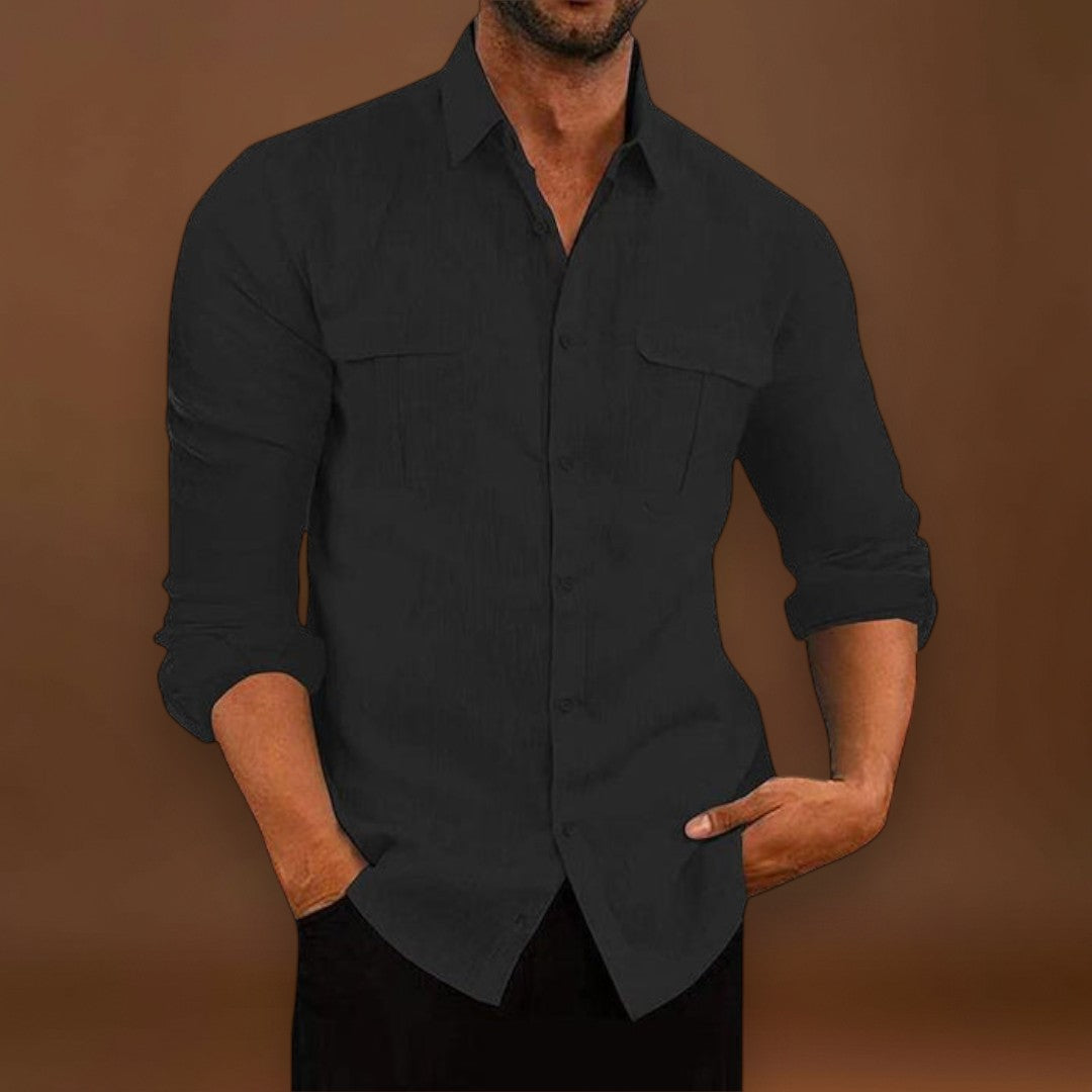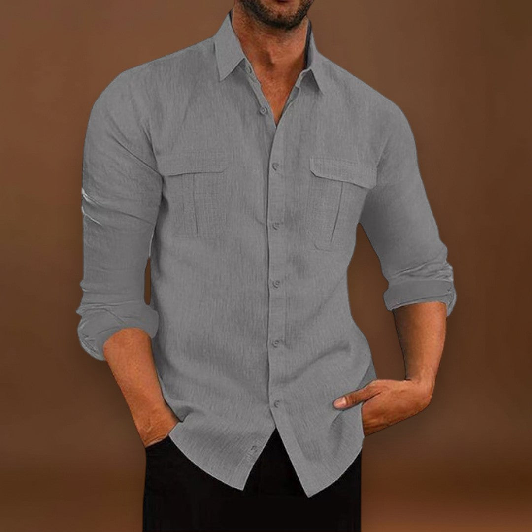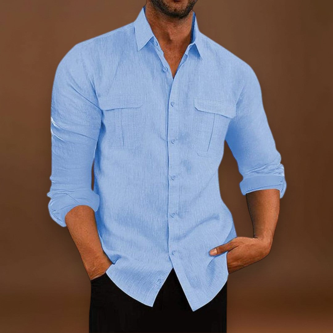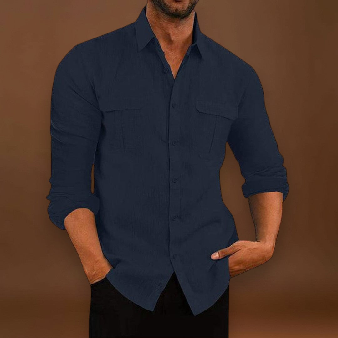 Ez a gombos ing egy vegyes szövetből készült, amelyet úgy terveztek, hogy egyensúlyos illeszkedést és kényelmet nyújtson a nap folyamán. Az ing klasszikus gallérral és gombos elülső záródással rendelkezik, amely megőrzi a rendezett és struktúrált megjelenést. A vegyes szövet légáteresztőséget és mozgásszabadságot biztosít, miközben a felület sima és gyűrődésálló.