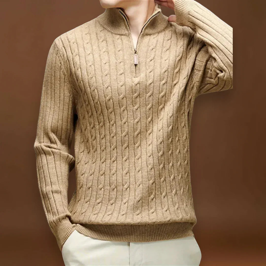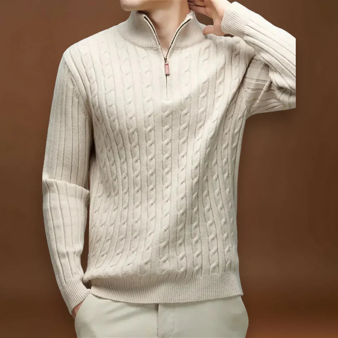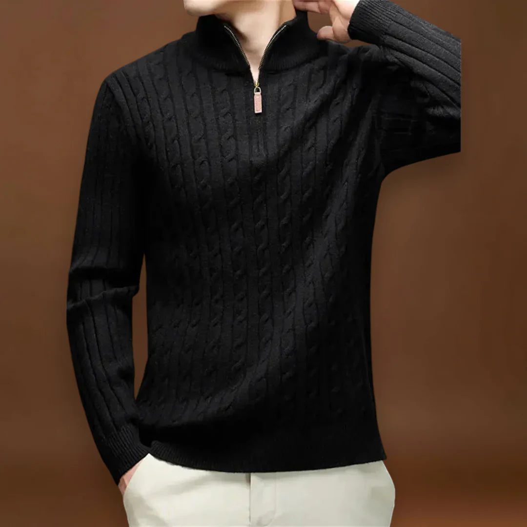A Roberto cipzáras pulóver puha tapintású anyagok keverékéből készült. Funkcionális cipzárral rendelkezik, amely megkönnyíti az öltözködést és levetkőzést. A dizájn lehetővé teszi, hogy a darab különböző rétegekhez és stílusokhoz alkalmazkodjon.
