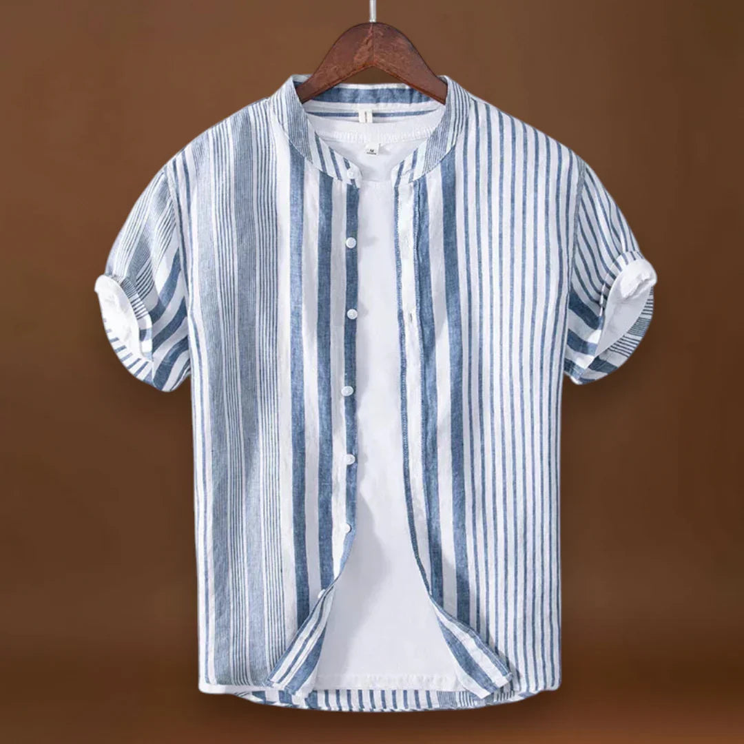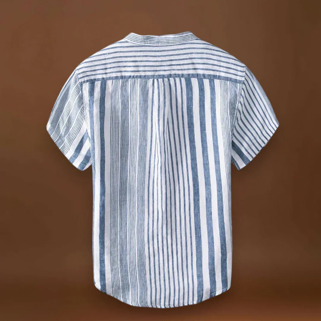 Ez a csíkos ing légáteresztő keverékből készült, amely segít a levegő áramlásában a szöveten keresztül. Az anyag puha tapintású és lehetővé teszi a szabad mozgást. A csíkos minta strukturált megjelenést kölcsönöz, miközben a dizájn egyszerű és tiszta marad.