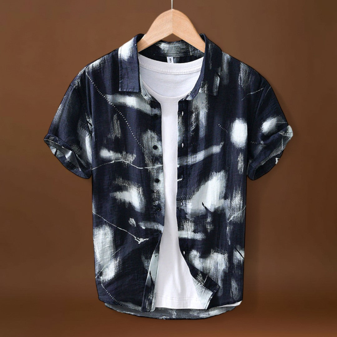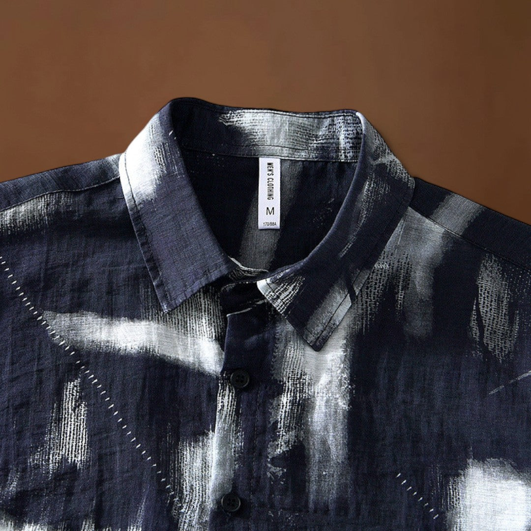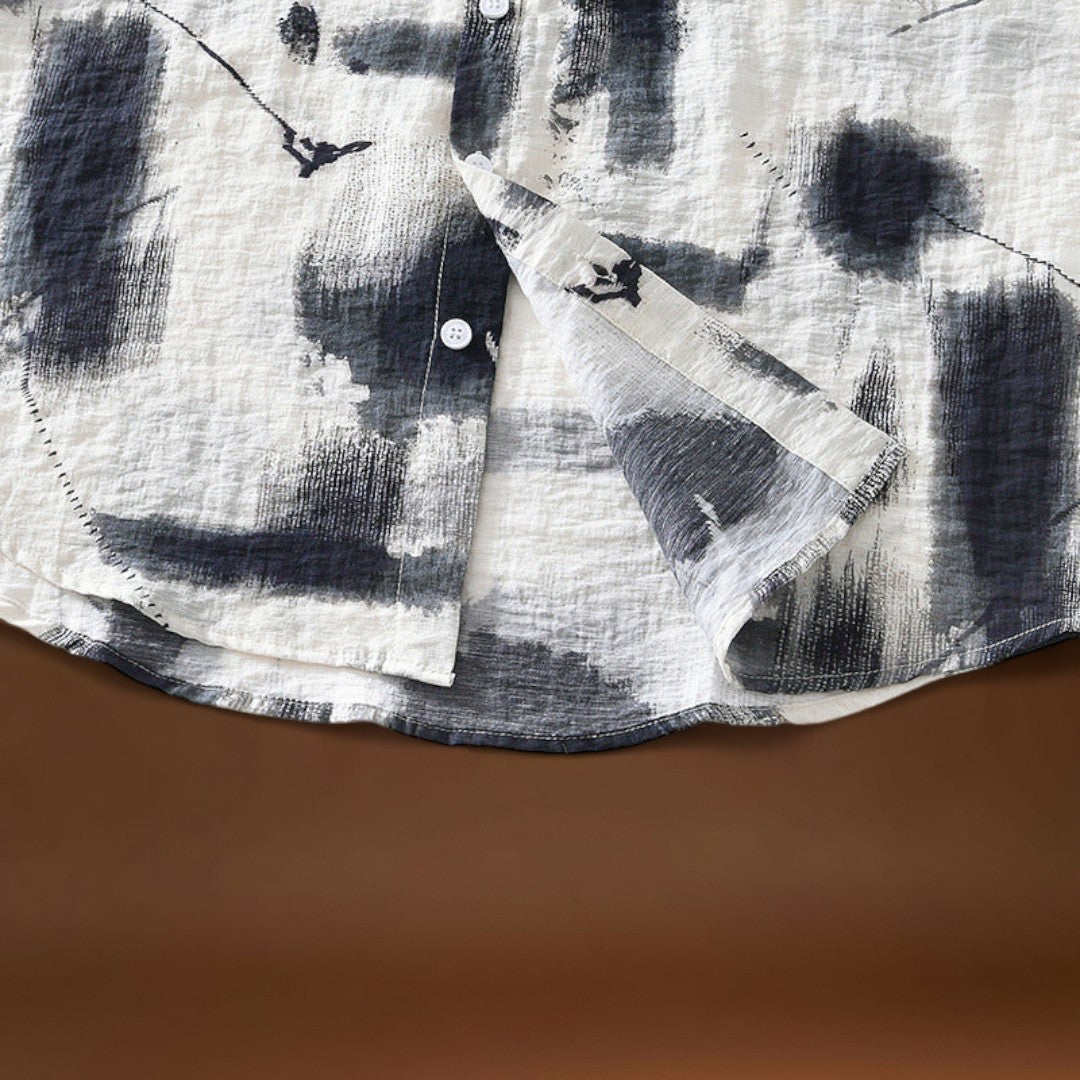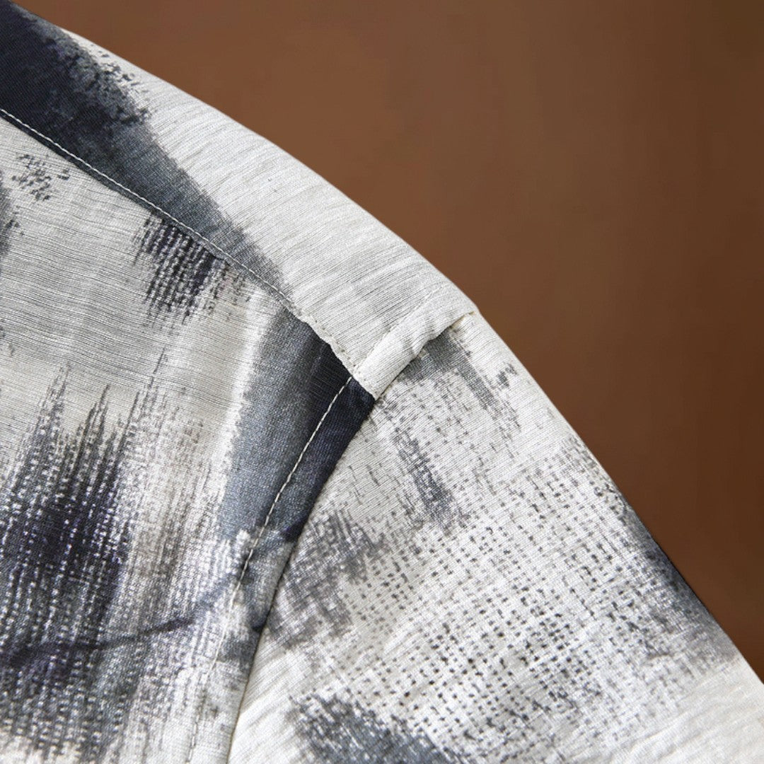 Ez a rövid ujjú, nyomtatott ing laza szabással rendelkezik, amely látható mintázati részleteket tartalmaz. A szabás lehetővé teszi a mozgás szabadságát, míg a rövid ujjak segítenek növelni a légáramlást és csökkenteni a rétegek térfogatát. A nyomtatott felület vizuális érdekességet ad anélkül, hogy befolyásolná a darab funkcionalitását.