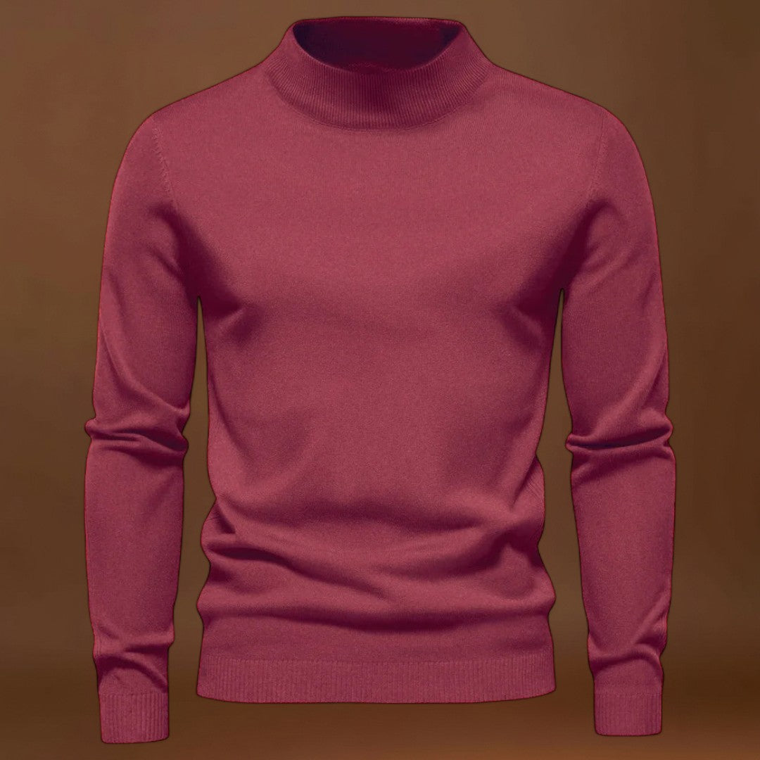 Ez a fél magasnyakú pulóver védelmet nyújt a nyaknak, miközben lehetővé teszi a könnyű mozgást. A kevert anyag folyamatos meleget biztosít és puha érzetet kelt anélkül, hogy meghatározná a szálakat. A nyakkivágás a nyak közepén helyezkedik el, ami enyhe szigetelést és rendezett sziluettet biztosít.