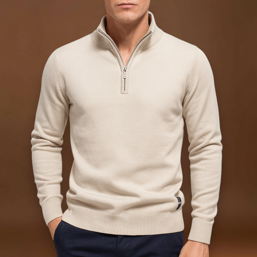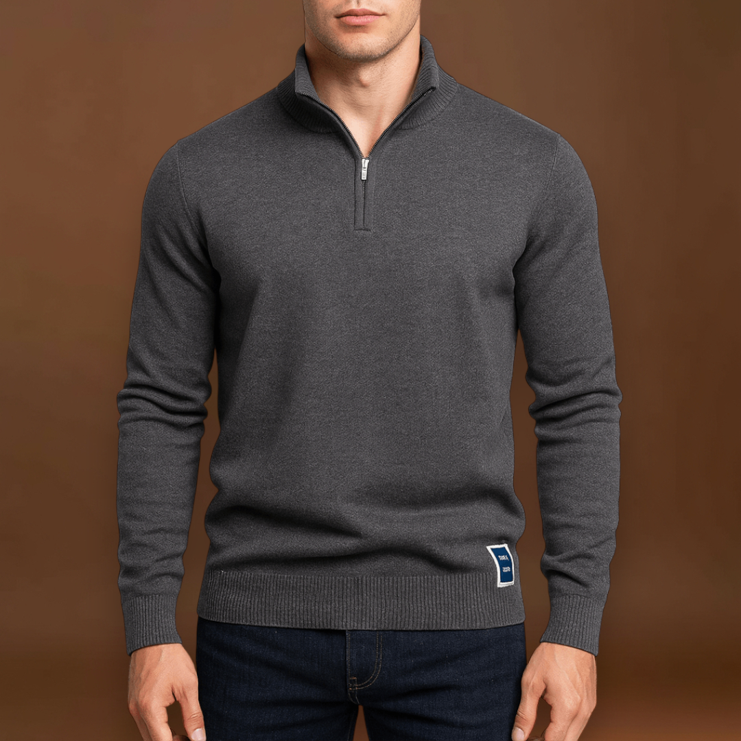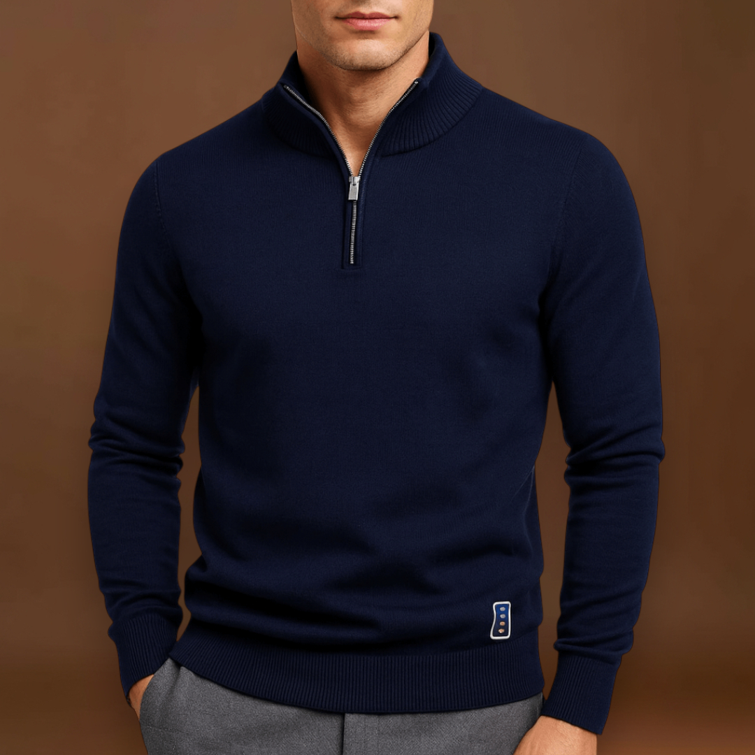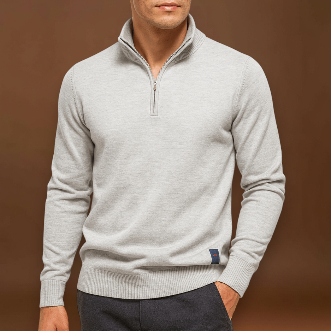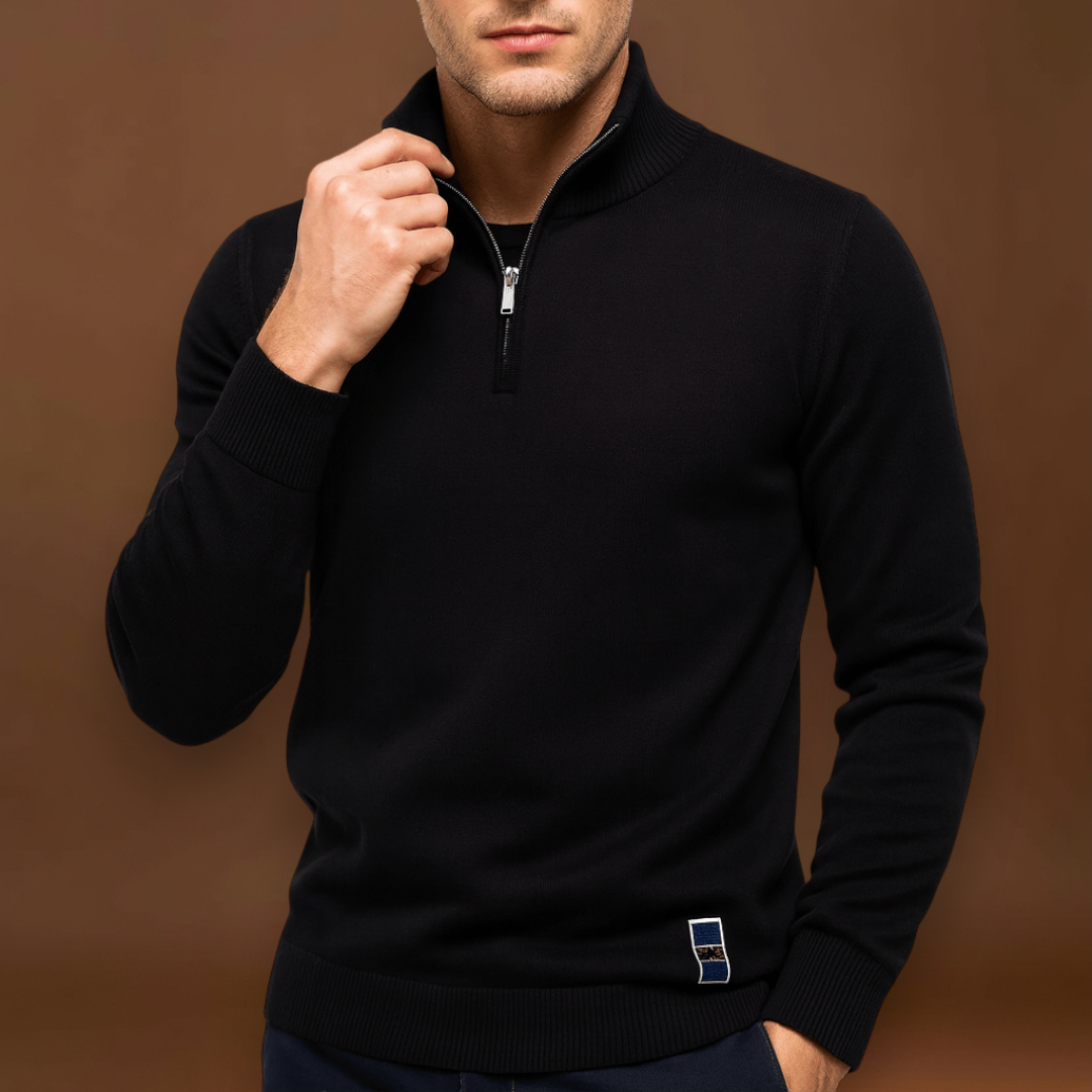 Ez a testhezálló kötött pulóver negyed zippes nyakkal és szoros, formázott szilhuettel rendelkezik. A légáteresztő kötött anyag puha és sima a bőrön. A zipzár lehetővé teszi a nyak állítását és a levegő áramlásának szabályozását.