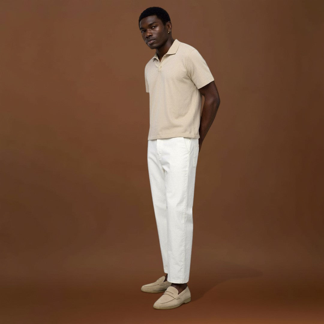 A felső anyag szintetikus keverék, amely ellenáll a foltoknak és könnyen tisztítható. A gumi talp tapadást és tartósságot biztosít különböző felületeken. A talp emellett támogatást nyújt a járás és az állás során.