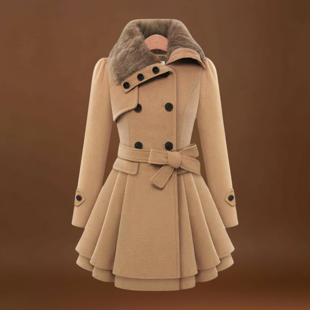 Kirilla - Elegáns Kabát Műszőrme Gallérral