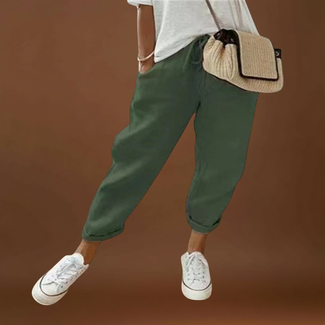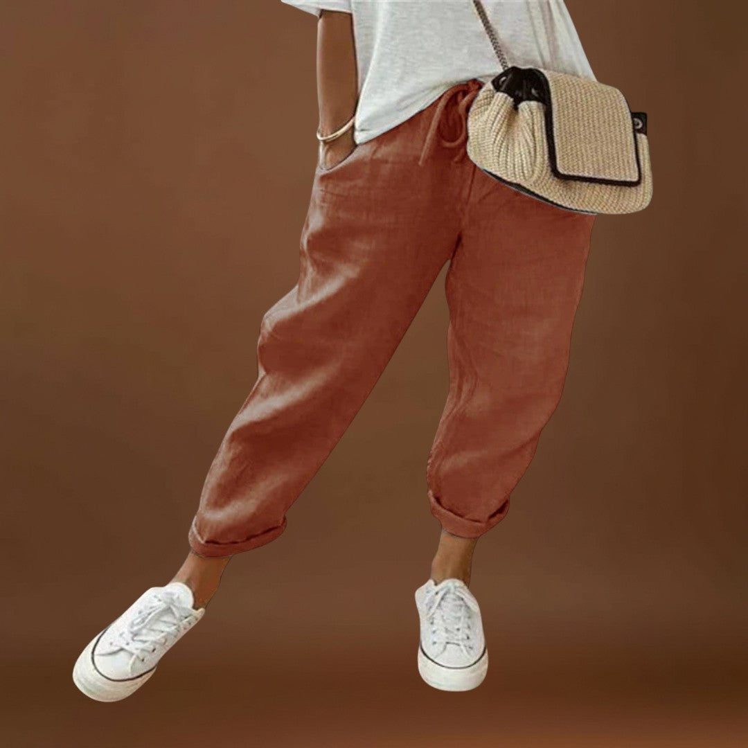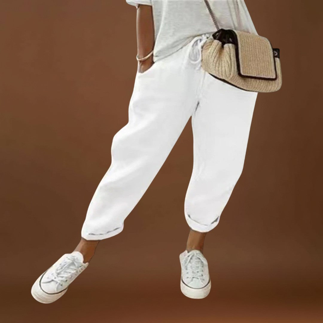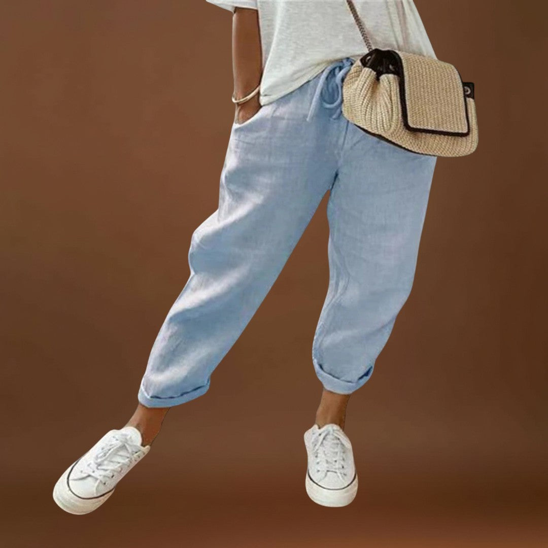 • Könnyű és légies dizájn: Ezek a női nadrágok kényelmesek a magas minőségű len anyagnak köszönhetően, még a forró nyári napokon is.