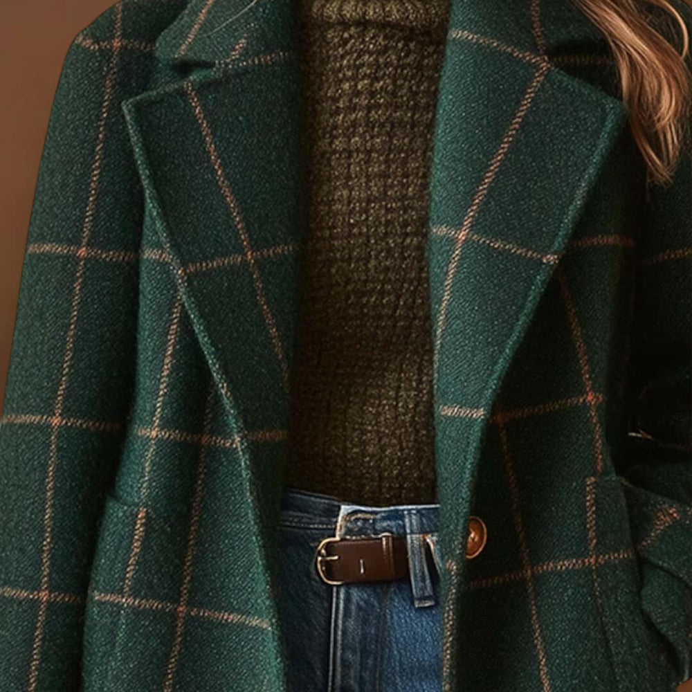 Valeria | Elegáns Kockás Gyapjú Kabát