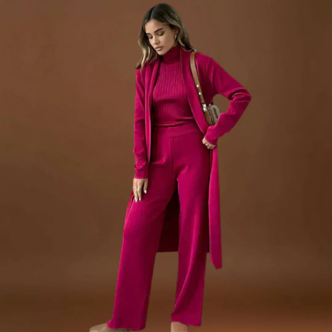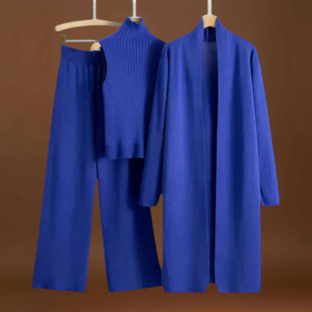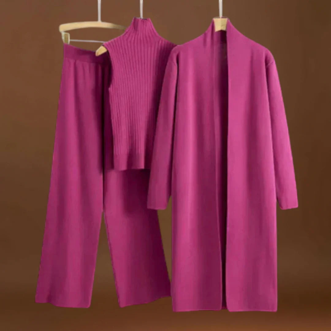 • Elegáns dizájn: Ez a 3 részes szett – nadrág, kardigán és blúz – kifinomult megjelenést kölcsönöz, amely tökéletes bármilyen alkalomra.