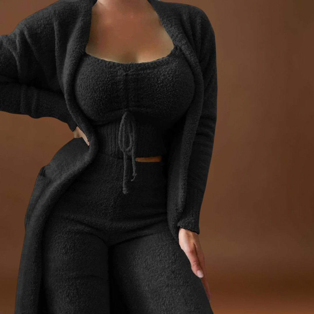 Fedezd fel a stílus és a kivételes kényelem tökéletes kombinációját a Raquel Pizsama Szetttel. Ultra puha flanel anyagból készült, ez a 3 részes szett melegbe és kényelembe burkol, elegáns és laza megjelenést kínálva, amely biztosan felhívja mindenki figyelmét.